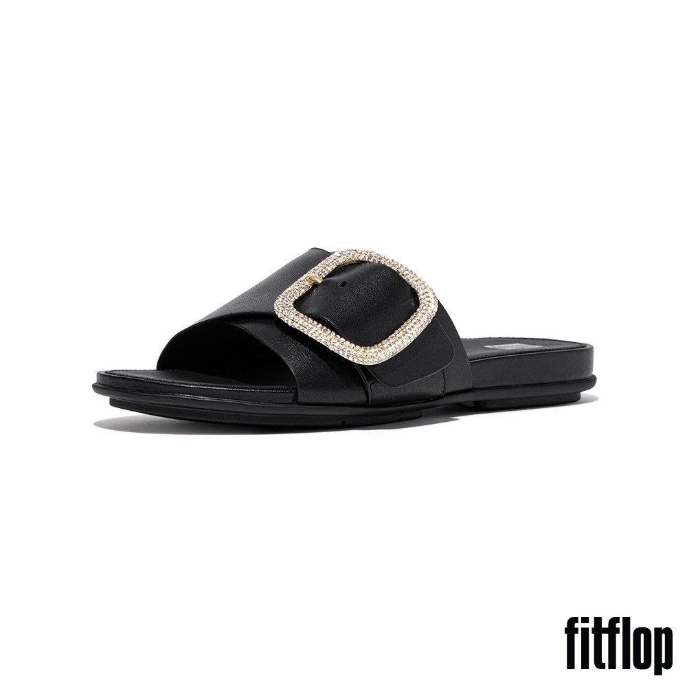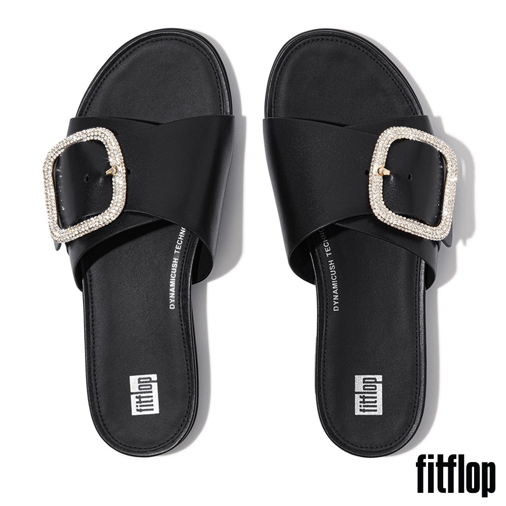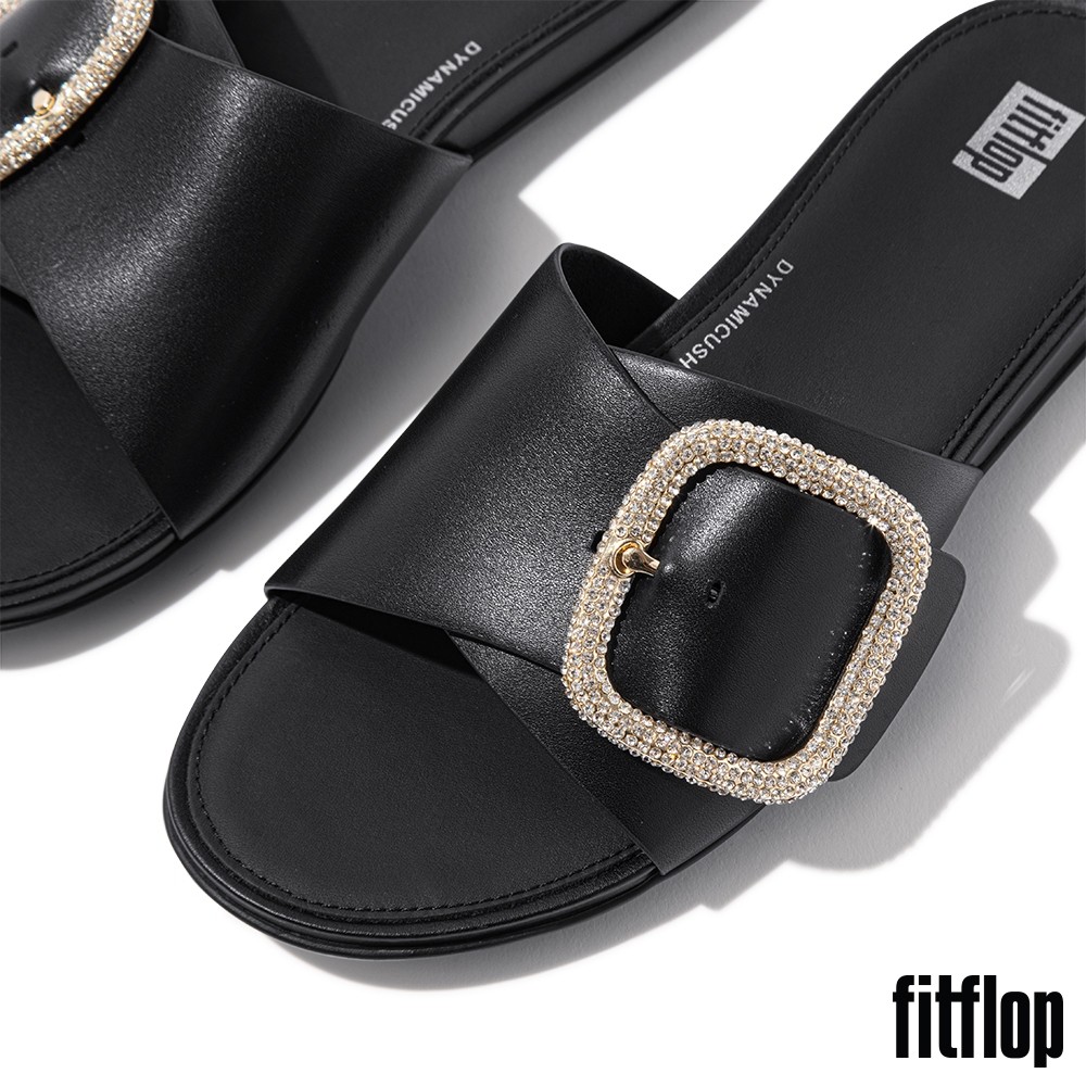 【FitFlop】GRACIE 水鑽大扣環皮革涼鞋-女(黑色)US5|US6|US7|US8|US9Flat SandalsFitFlop官方旗艦店