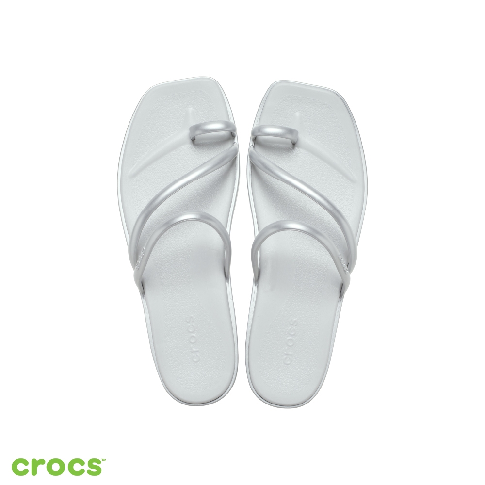 Crocs 卡駱馳 女鞋 涼拖 Miami 邁阿密 Metallic Toe Loop-銀色 211526-040W6(22.9CM)|W7(23.8CM)|W8(24.6CM)|W9(25.5CM)Flat SandalsCrocs官方直營店
