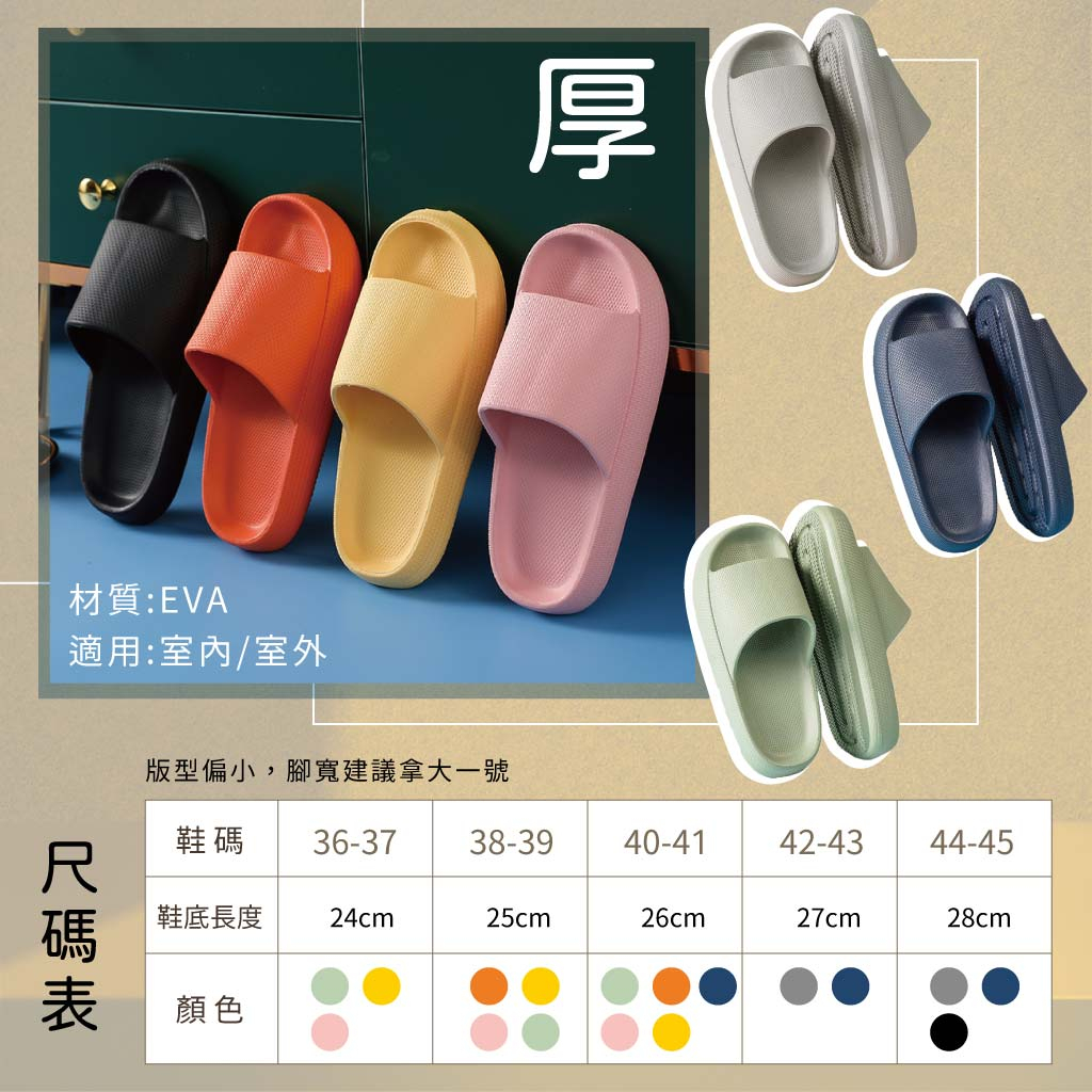 【出清促銷】踩屎感拖鞋 超厚底拖鞋 浴室拖鞋 EVA拖鞋 居家拖鞋 室內拖鞋 室外拖鞋 防滑拖鞋 防水拖鞋薄黃色-40/41(約25-26cm)|薄黃色-38/39(約24-25cm)|薄黃色-36/37(約23-24cm)|薄綠色-40/41(約25-26cm)|薄丈青色-44/45(約28-29cm)|厚丈青色-40/41(約25-26cm)|薄橘色-40/41(約25-26cm)|厚橘色-38/39(約24-25cm)|厚黃色-38/39(約24-25cm)|厚橘色-40/41(約25-26cm)|厚黃色-36/37(約23-24cm)|厚黃色-40/41(約25-26cm)|厚綠色-36/37(約23-24cm)|厚綠色-38/39(約24-25cm)|厚丈青色-42/43(約27-28cm)|厚丈青色-44/45(約28-29cm)|厚灰色-44/45(約28-29cm)|厚粉色-36/37(約23-24cm)|厚粉色-40/41(約25-26cm)|薄灰色-42/43(約27-28cm)|薄綠色-36/37(約23-24cm)|薄丈青色-42/43(約27-28cm)|薄綠色-38/39(約24-25cm)|薄黑色-44/45(約28-29cm)|厚綠色-40/41(約25-26cm)|薄粉色-36/37(約23-24cm)|薄粉色-40/41(約25-26cm)|薄橘色-38/39(約24-25cm)|薄丈青色-40/41(約25-26cm)|厚灰色-42/43(約27-28cm)|薄粉色-38/39(約24-25cm)|厚黑色-44/45(約28-29cm)|薄灰色-44/45(約28-29cm)|厚粉色-38/39(約24-25cm)Indoor SlippersFinetech釩泰醫用口罩生活用品官方旗艦館