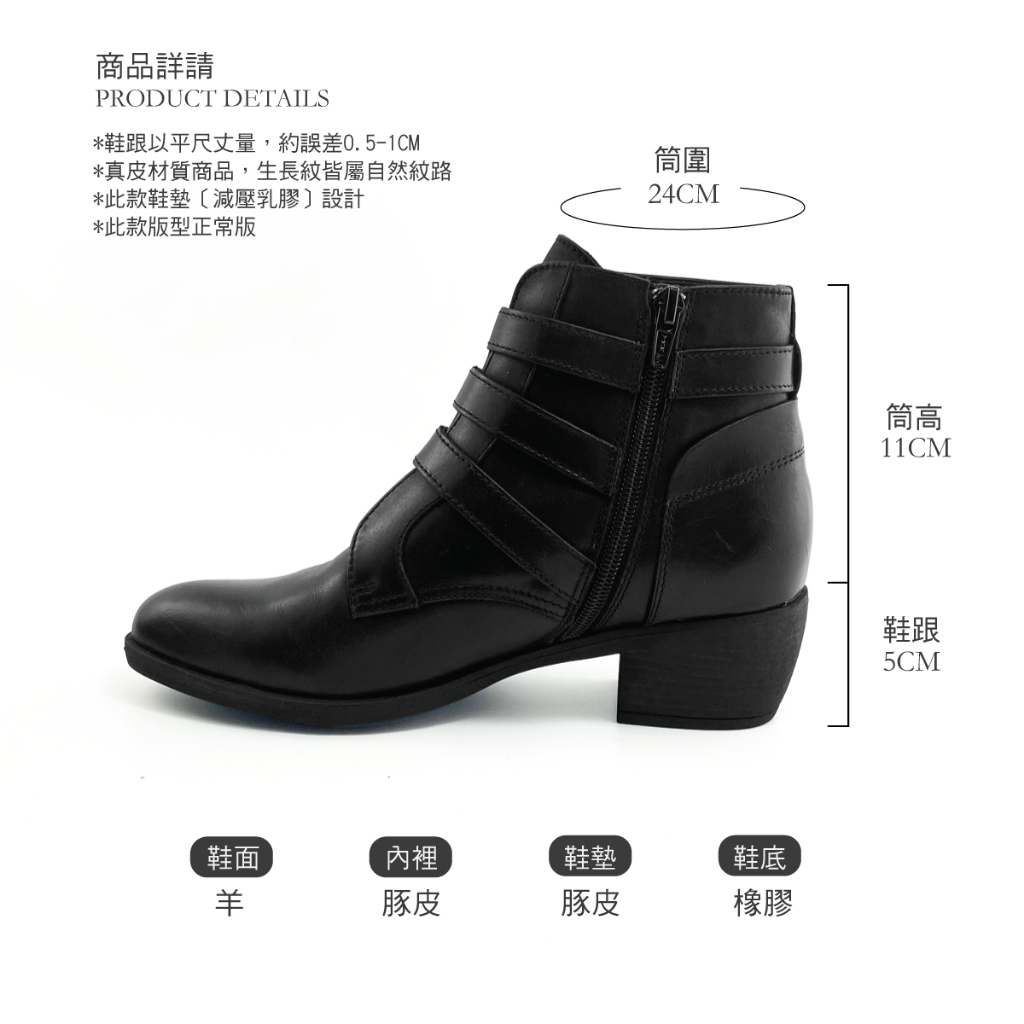 Ea專櫃女鞋 拉鍊飾扣短靴 (黑)7805黑,35 (22.0 ~ 22.5 cm)|黑,36 (22.5 ~ 23.0 cm)|黑,39 (25.0 ~ 25.5 cm)Fashion BootsEa專櫃女鞋|官方直營店