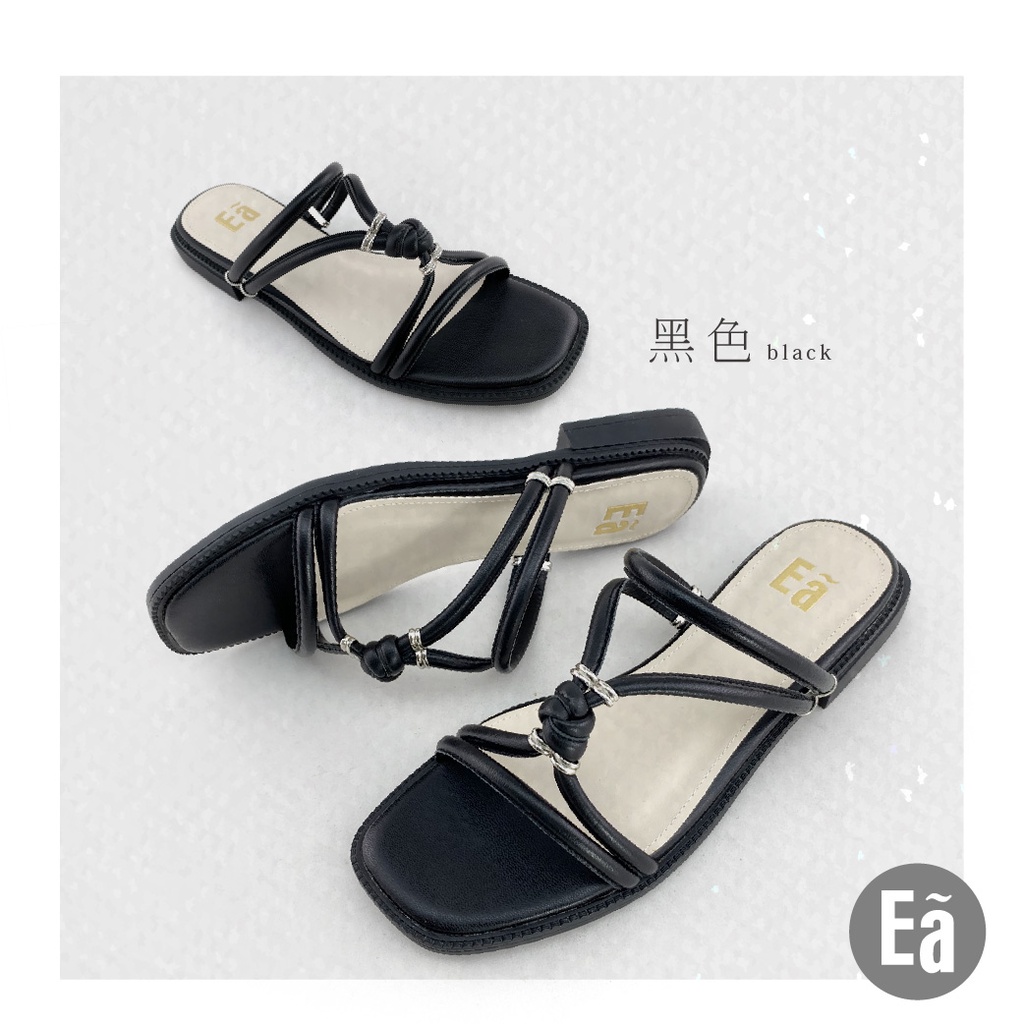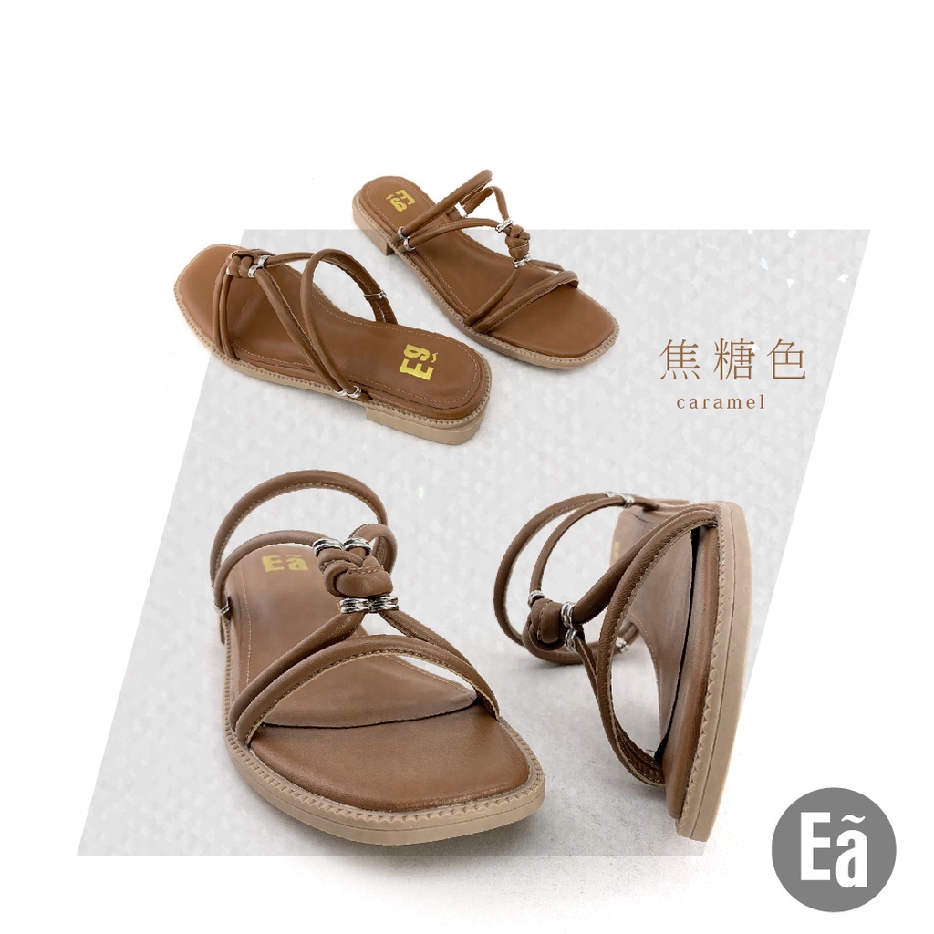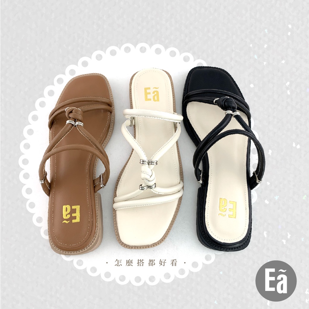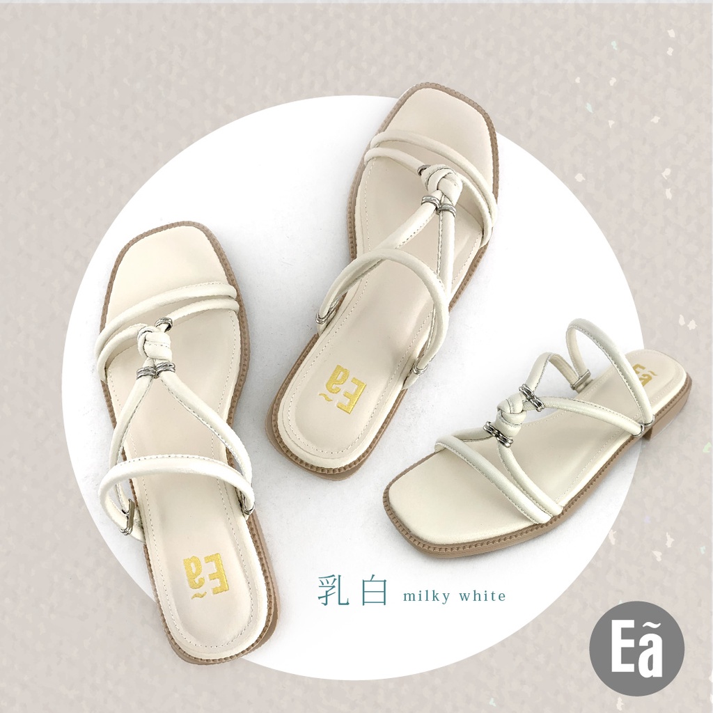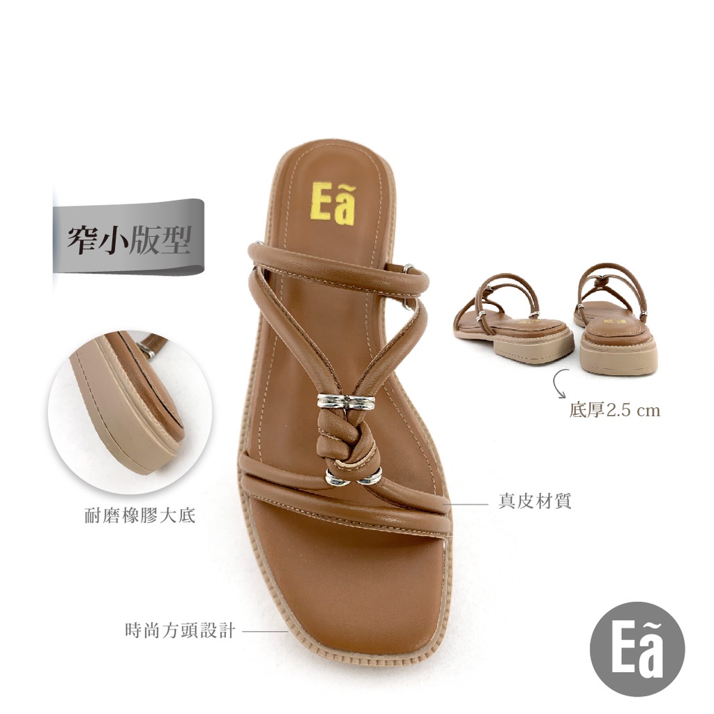 Ea專櫃女鞋 真皮時尚羅馬細帶方頭粗低跟平底涼拖鞋(乳白/焦糖/黑)窄小版型121444