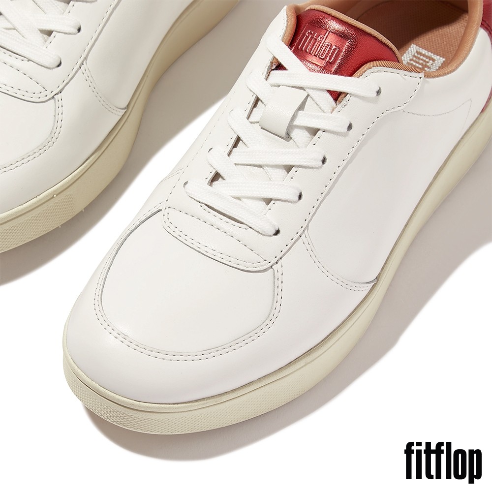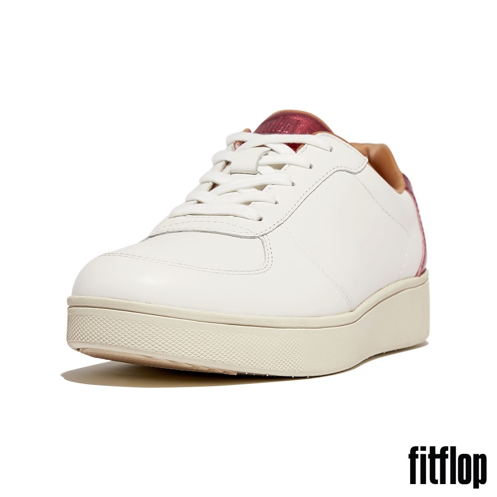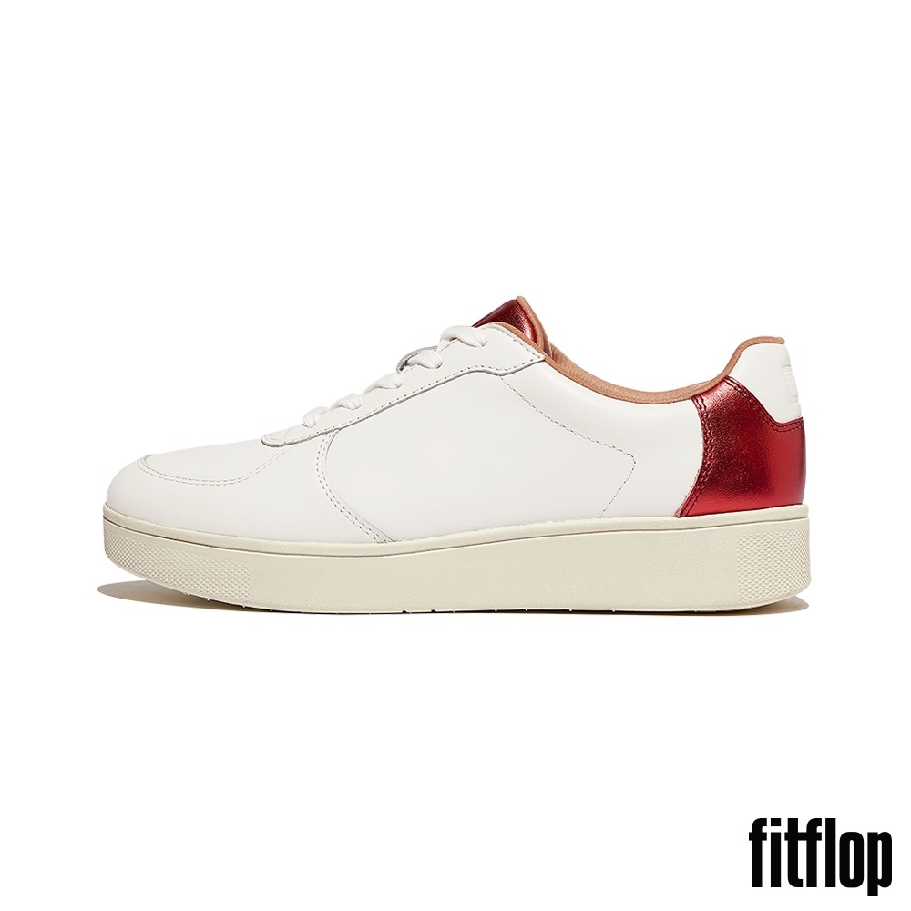 【FitFlop】RALLY 金屬後跟皮革拼接休閒鞋-女(都會白/金屬紅)US8|US5|US5.5|US6|US6.5|US7|US7.5FitFlop官方旗艦店