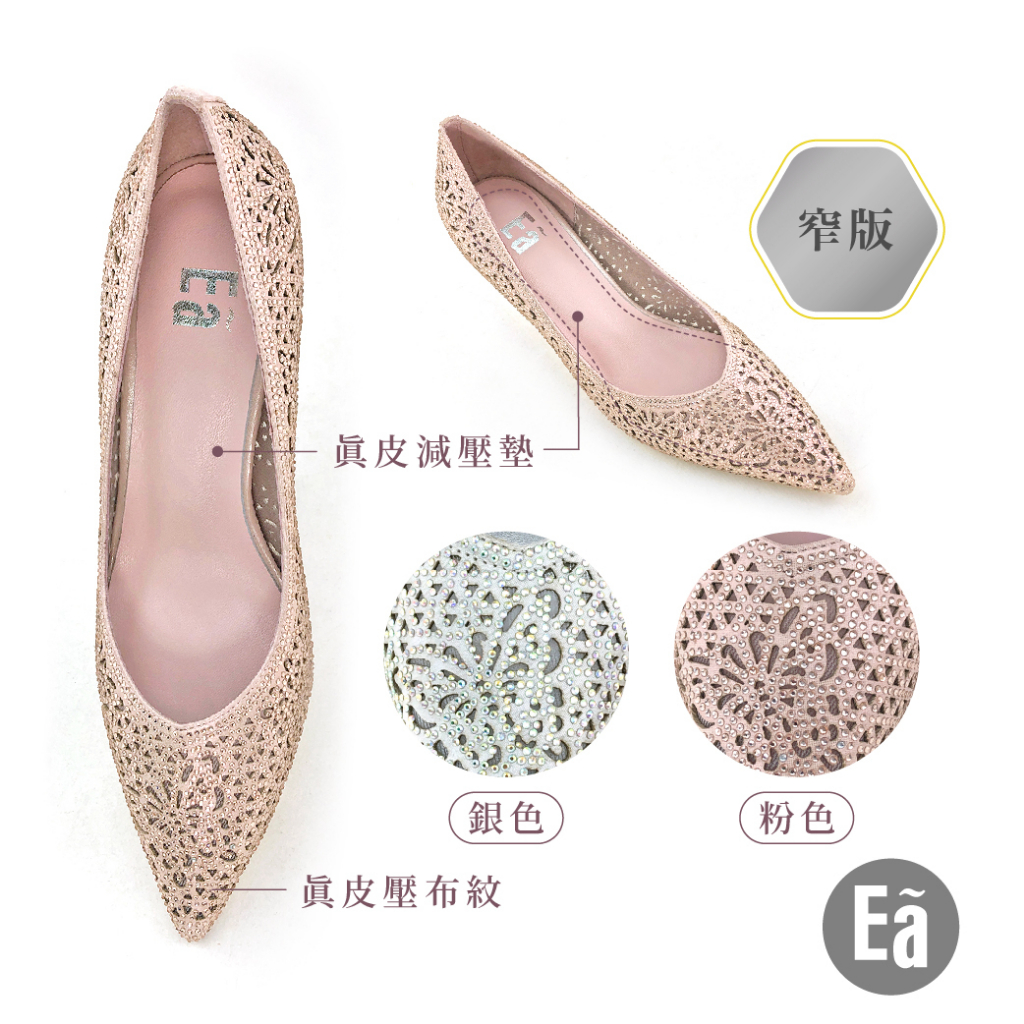 Ea專櫃女鞋 星空物語 真皮燙鑽半鏤空透膚6cm尖頭高跟鞋(粉色/銀色)9651