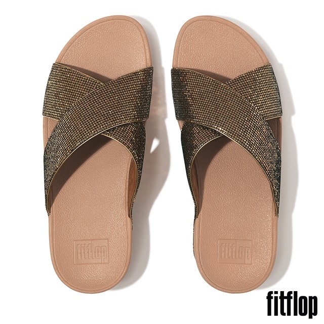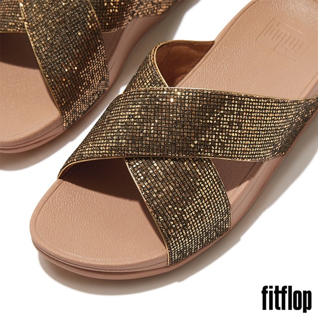 【FitFlop】LULU 亮片交叉涼鞋-女(陳舊金色)US8|US9|US5|US6|US7Flat SandalsFitFlop官方旗艦店