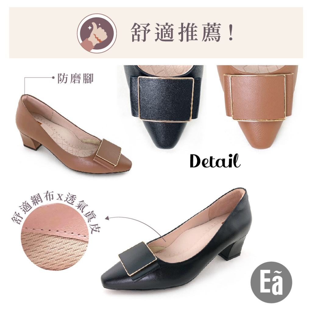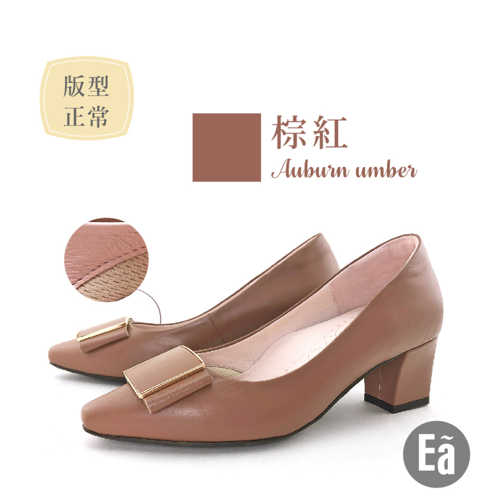 Ea專櫃女鞋 優雅日風 真皮素面小方頭金屬方釦 中跟鞋 粗跟鞋(棕紅)9110棕紅,25.0 (24.5 ~ 25.0 cm|棕紅,24.5 (24.0 ~ 24.5 cm|棕紅,25.5 (25.0 ~ 25.5 cmEa專櫃女鞋|官方直營店