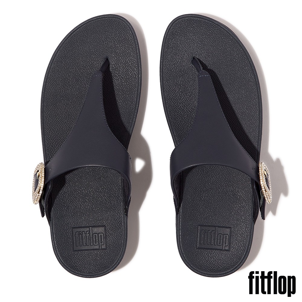 【FitFlop】LULU 水鑽扣環皮革夾腳涼鞋-女(午夜藍)US5|US6|US7|US8Flip FlopsFitFlop官方旗艦店