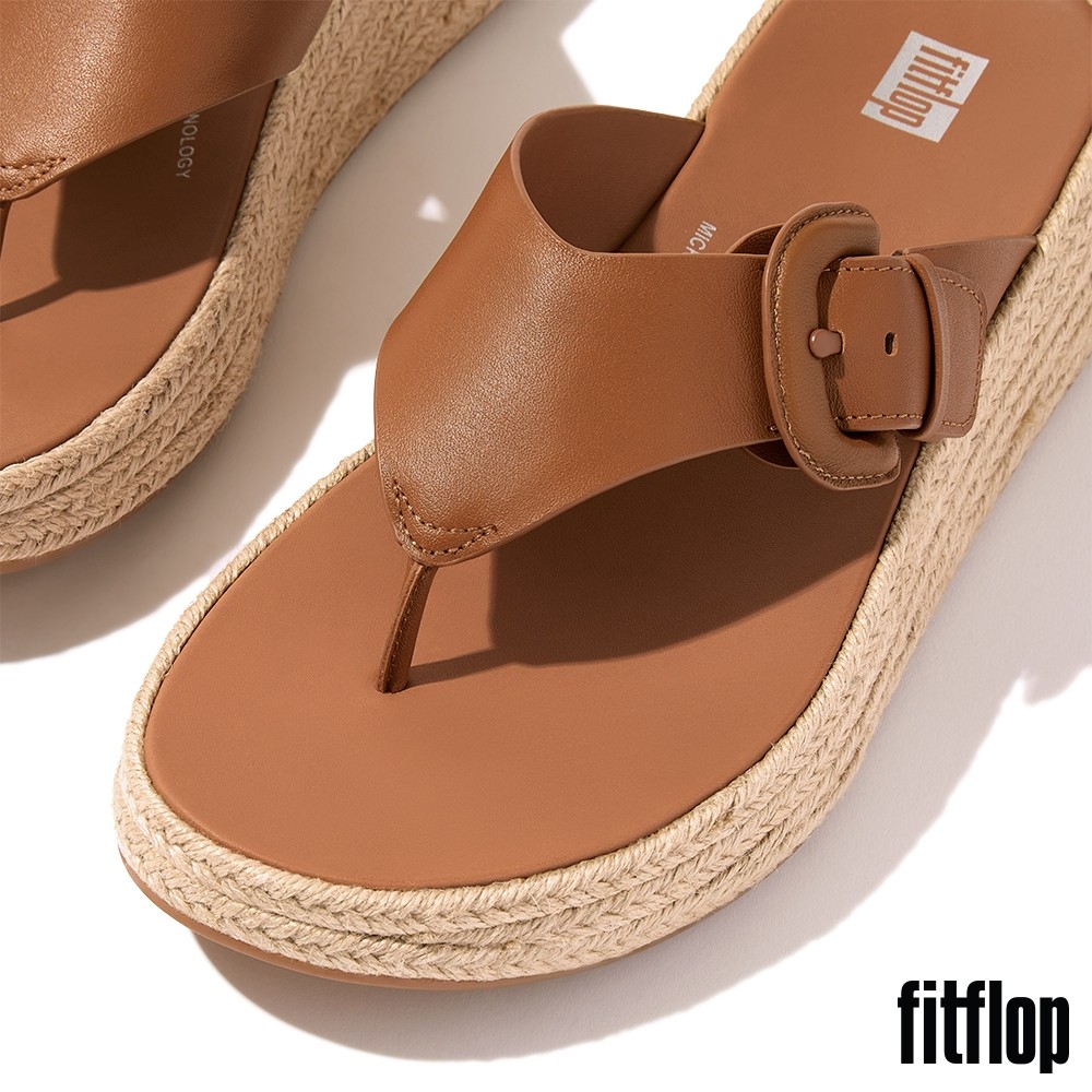 【FitFlop】F-MODE 草編調整式扣環皮革厚底夾腳涼鞋-女(駝色)US7|US8|US9|US5|US6Flip FlopsFitFlop官方旗艦店