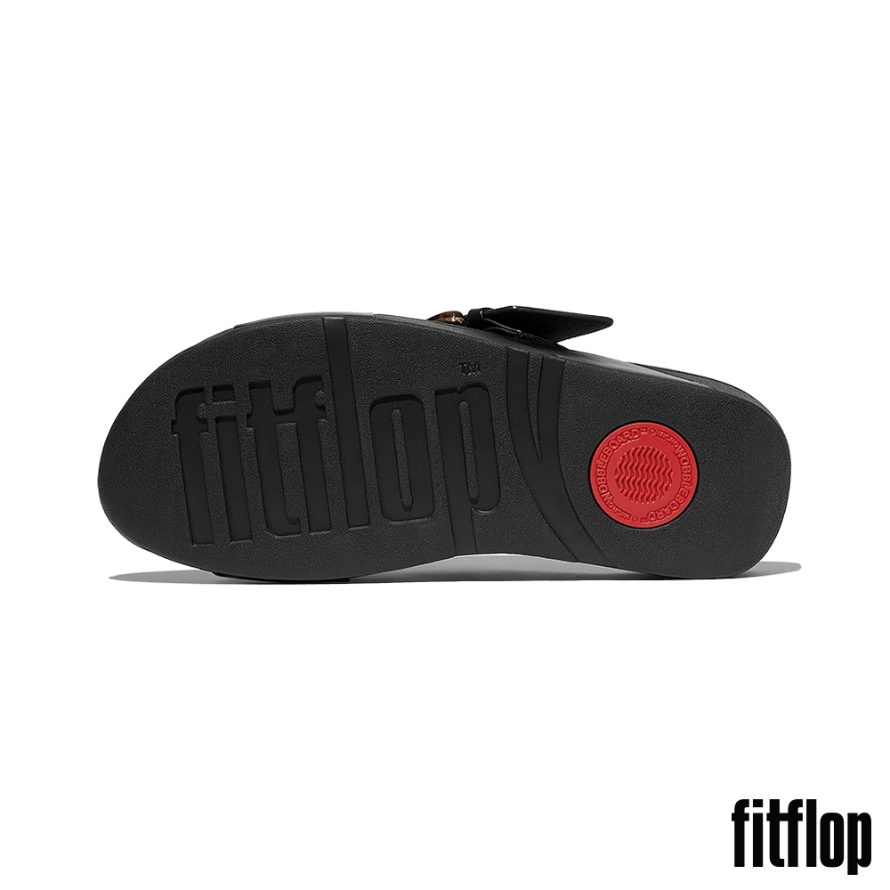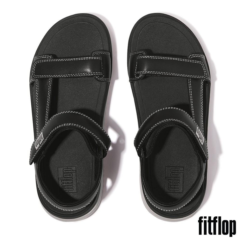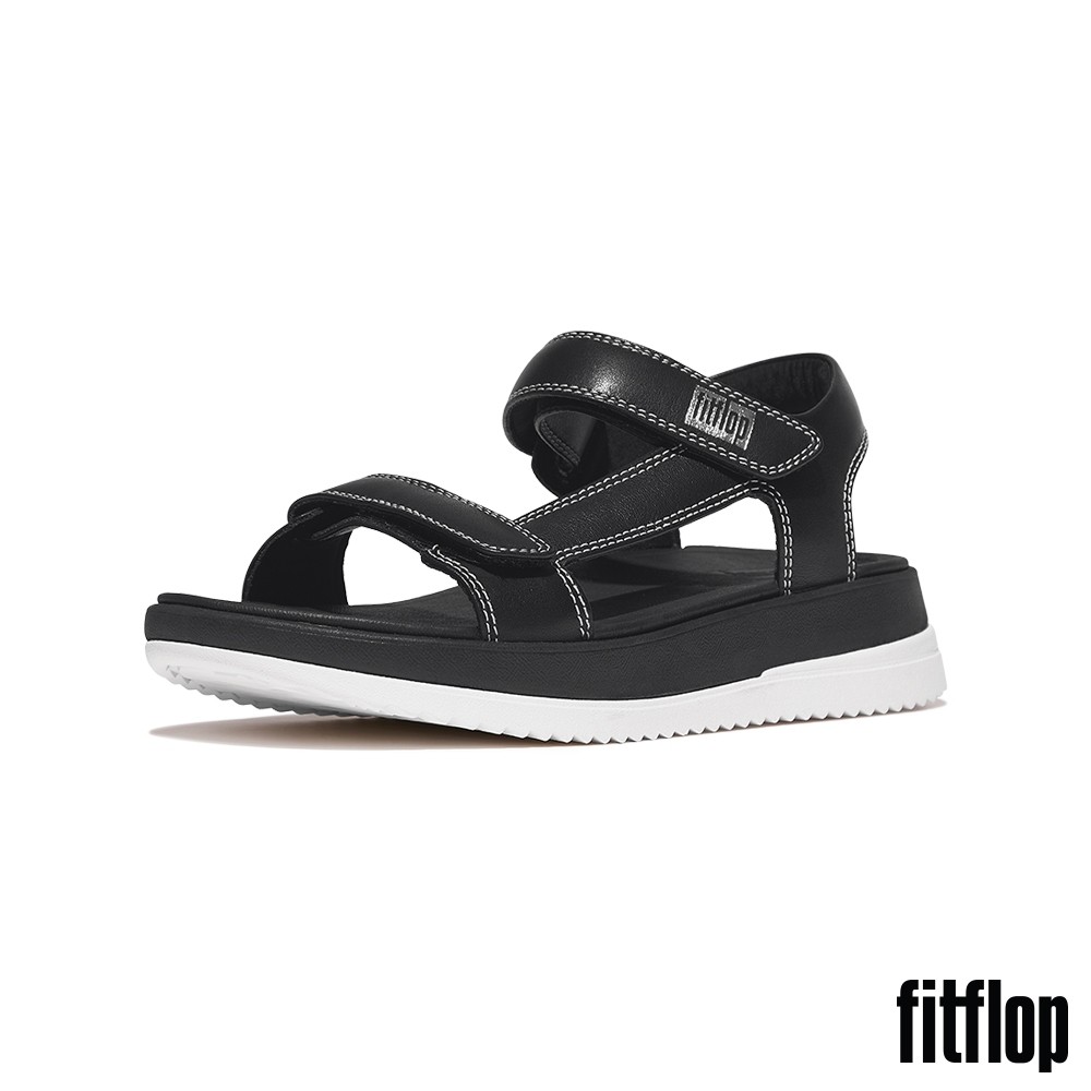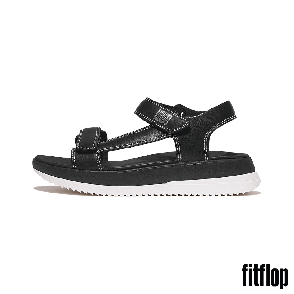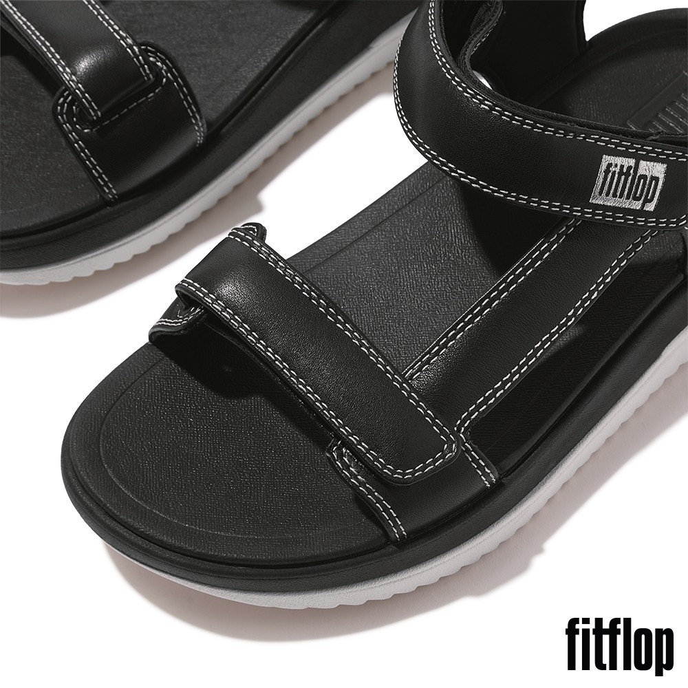 【FitFlop】SURFF 調整式撞色縫線皮革後帶涼鞋-女(黑色)US5|US6|US7|US8Flat SandalsFitFlop官方旗艦店