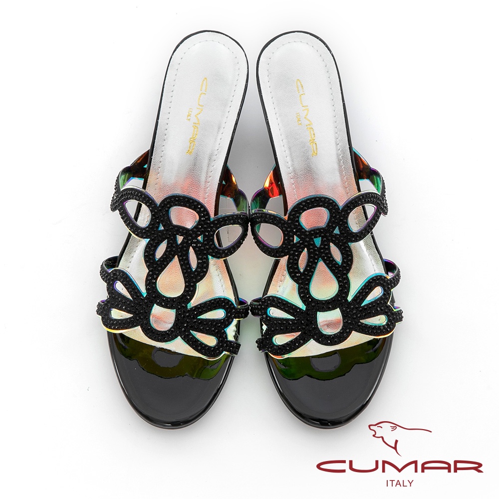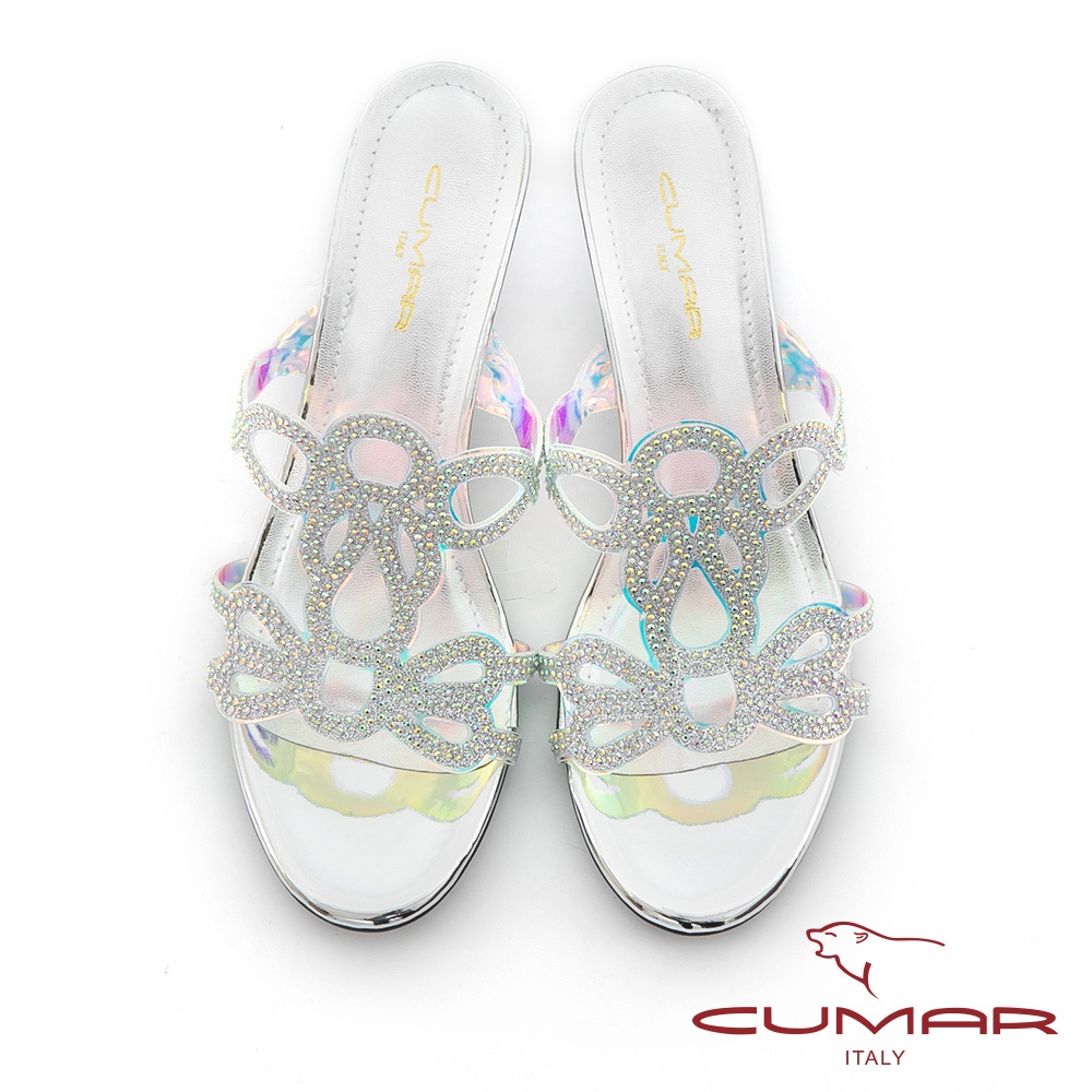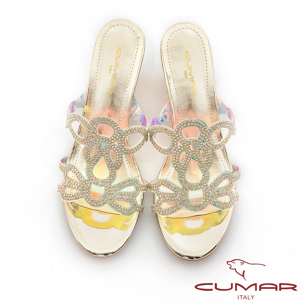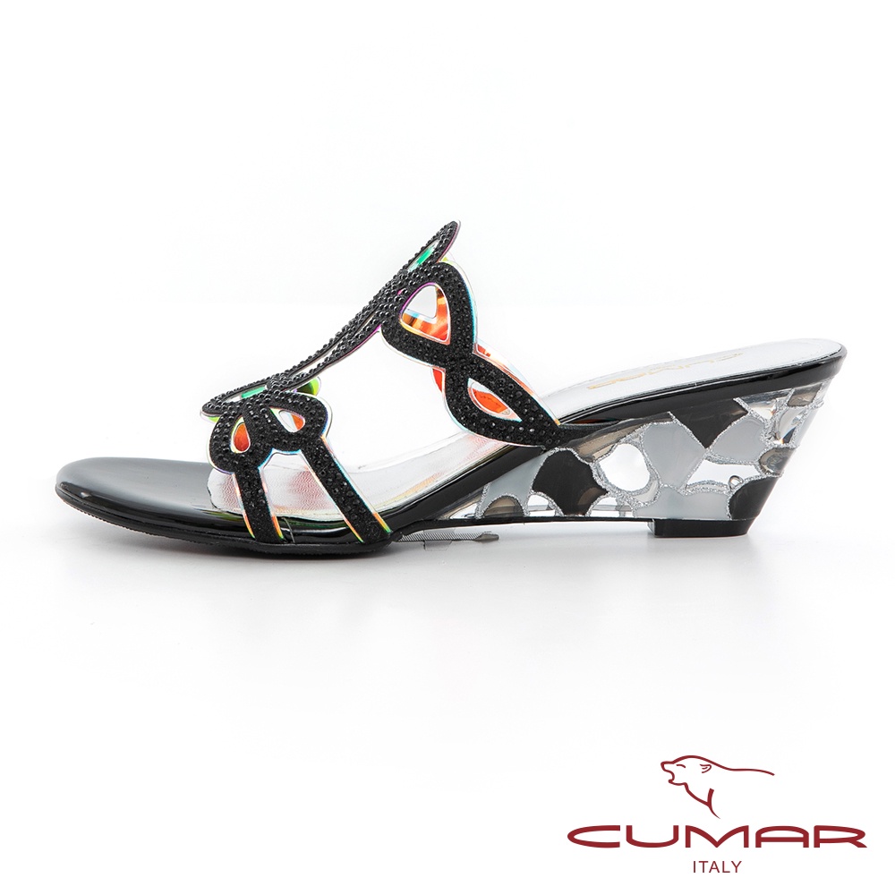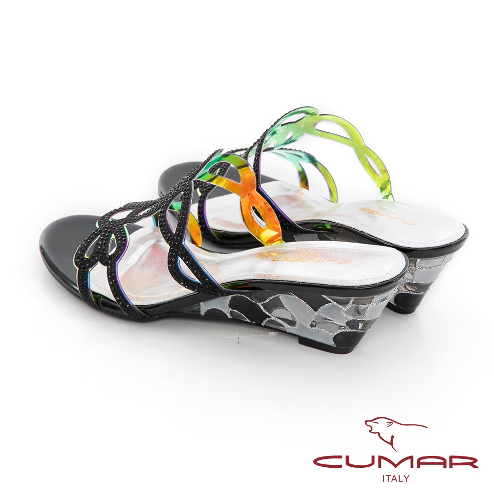 【CUMAR】鏤空排鑽馬賽克透明楔型涼拖鞋722-016