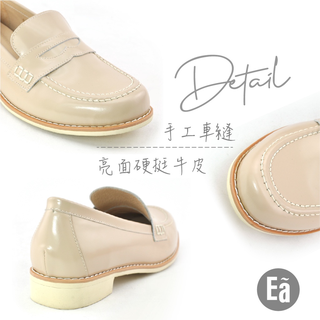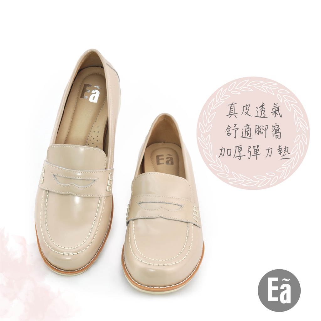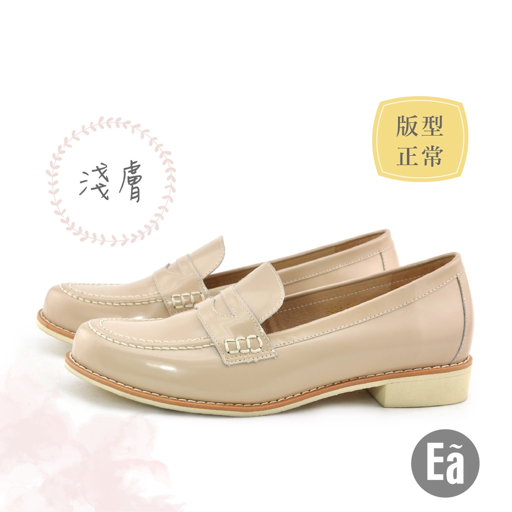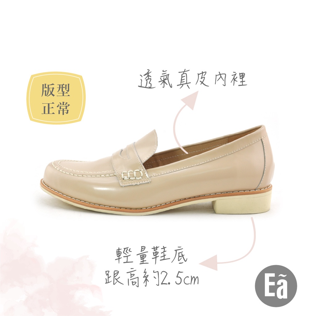 • Ea專櫃女鞋 真皮素面微光感學院風輕量低跟樂福鞋 學生鞋(淺膚)9233