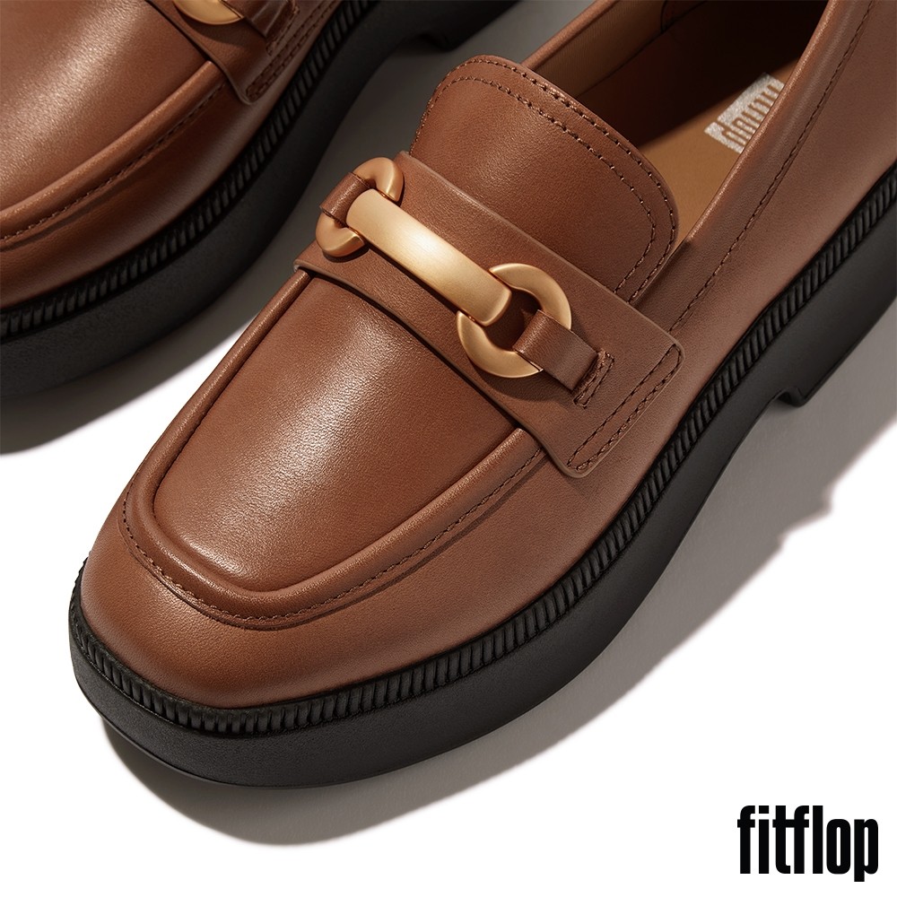 【FitFlop】F-LUMA 馬銜釦皮革方頭厚底樂福跟鞋-女(深棕褐色)US6|US6.5|US7|US7.5|US8|US9|US5|US5.5Loafers & Boat ShoesFitFlop官方旗艦店
