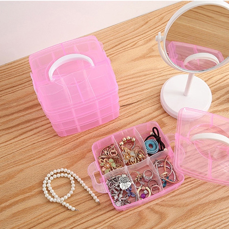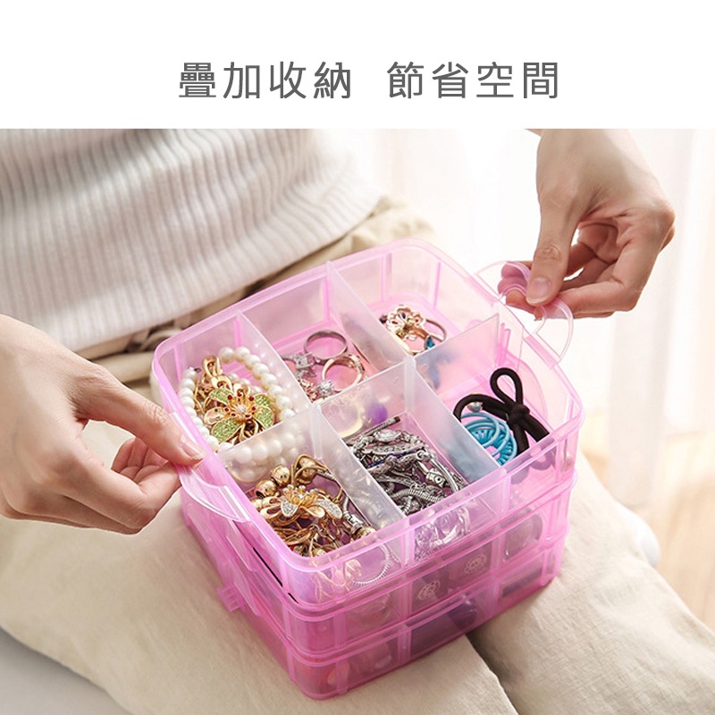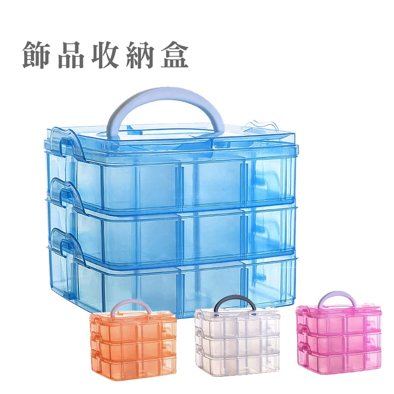 飾品收納盒 耳環收納盒 首飾盒 塑料手提 儲物箱 透明收纳盒 分類收納盒 多層收納盒 零件收納盒 樂高收納_HA051橘|粉|透明|藍Jewelry OrganizersFS生活品專賣