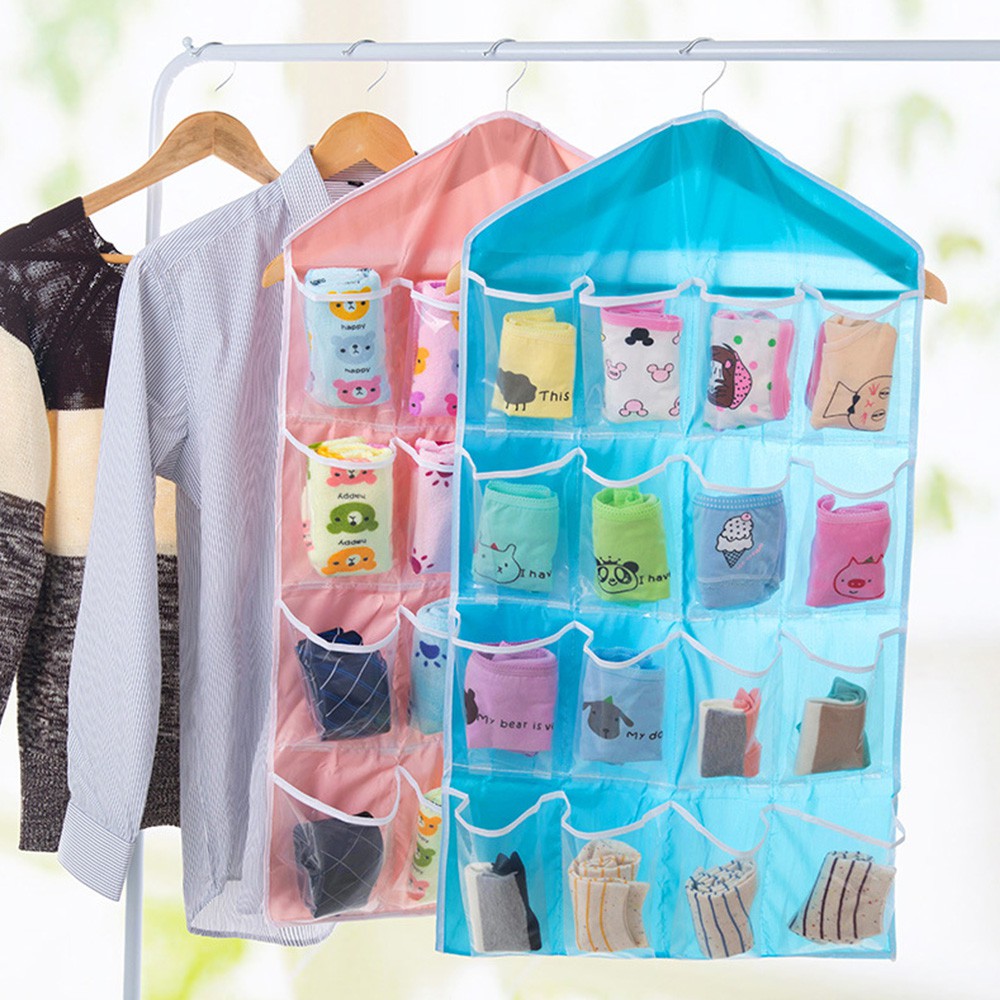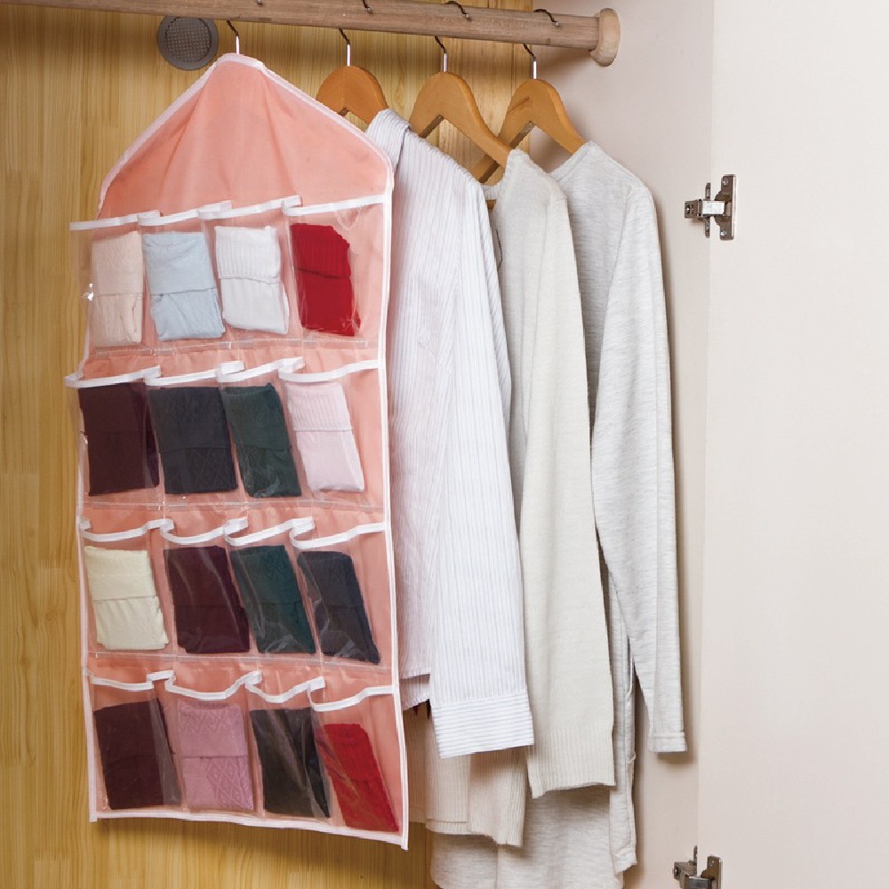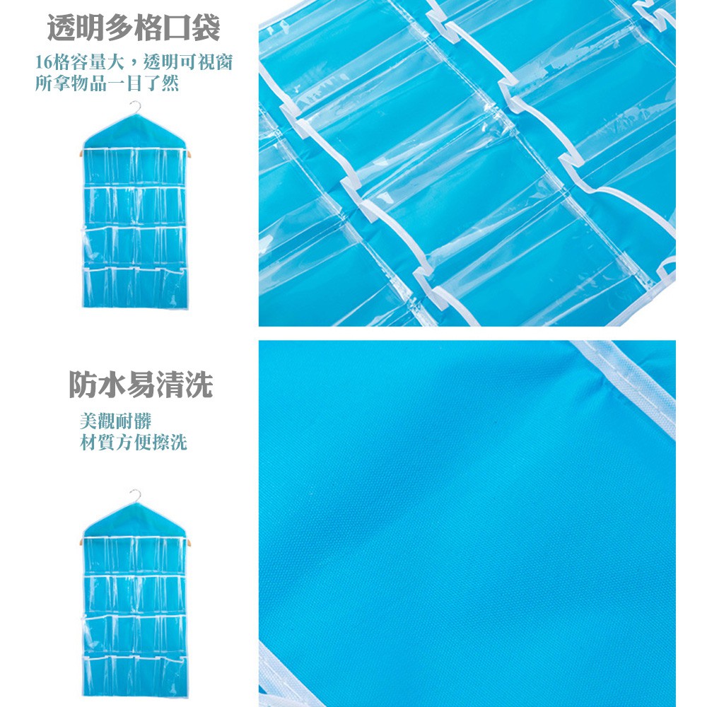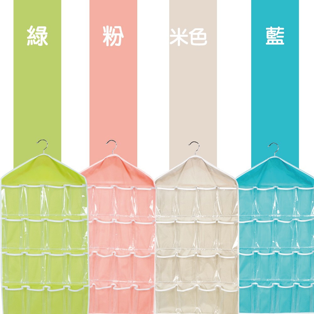 【B024】門後懸掛式16/30格透明收納掛袋 小物收納袋 分隔掛袋 小物掛袋 門後掛袋16格-綠|16格-粉|16格-藍|16格-黃|30格-灰|30格-米黃|16格-米|18+6格-米黃Wardrobe OrganizersFS生活品專賣