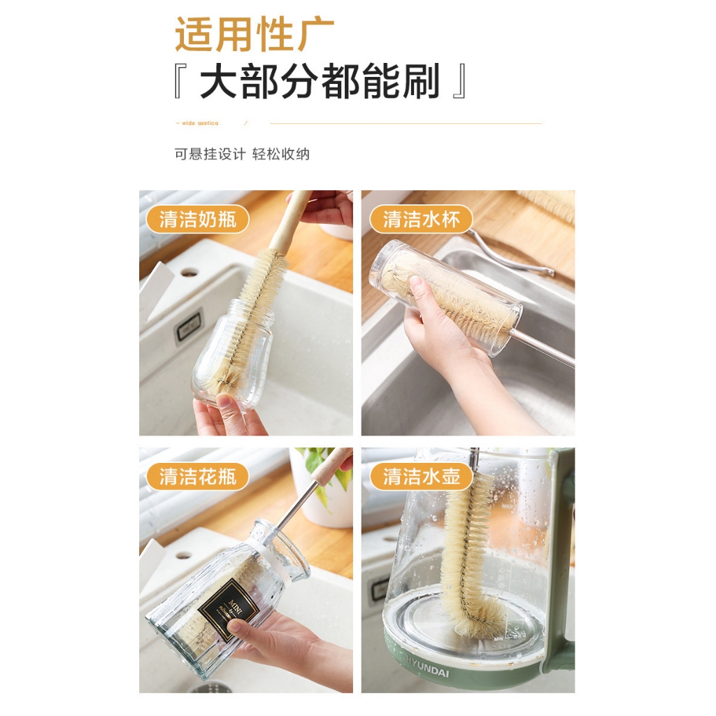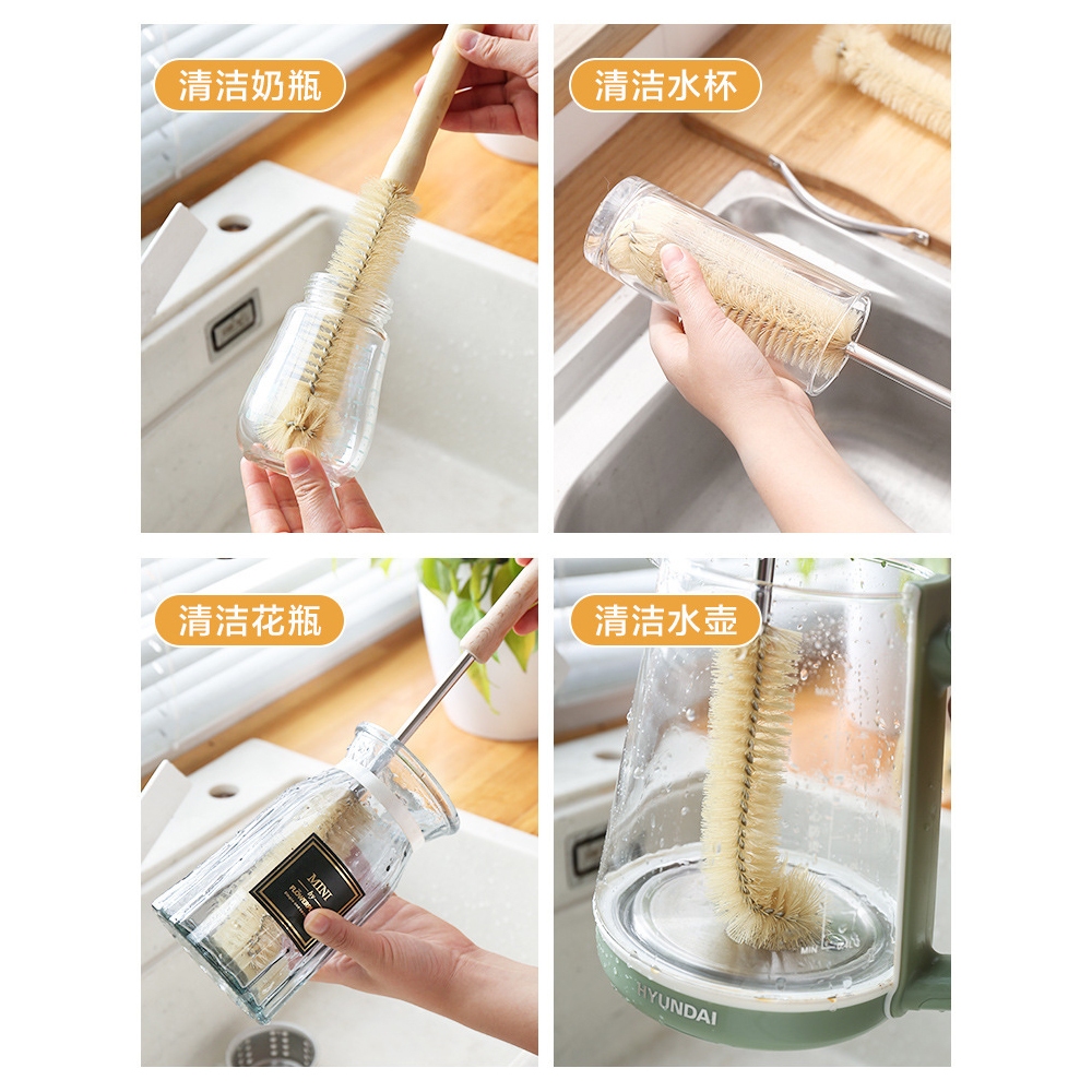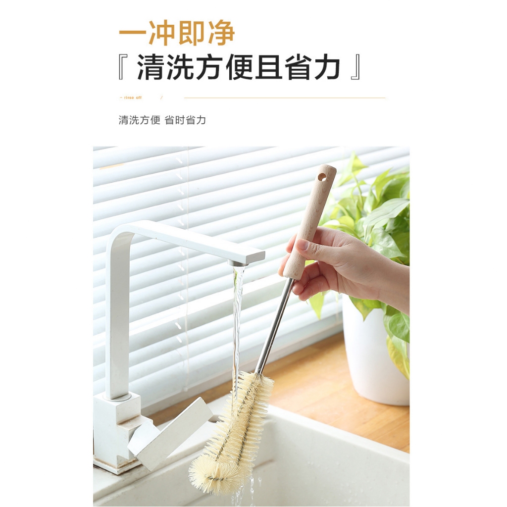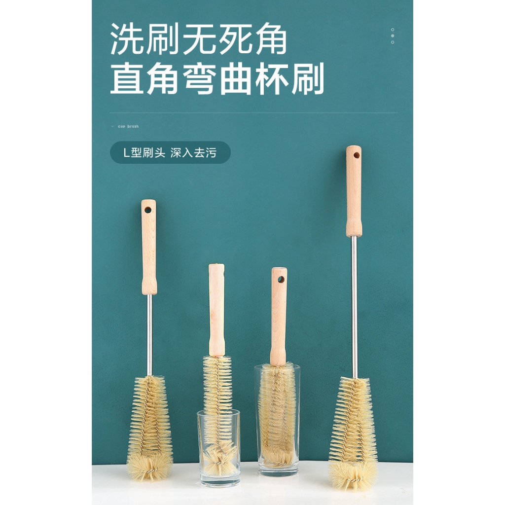 木柄奶瓶刷 奶瓶刷 杯刷 水壺刷 長柄 保溫瓶刷 紅酒杯刷 無死角 木柄杯刷 清潔刷 L型洗杯刷_DH10550CM 加長款|29CM 細口款 Cleaning BrushesFS生活品專賣