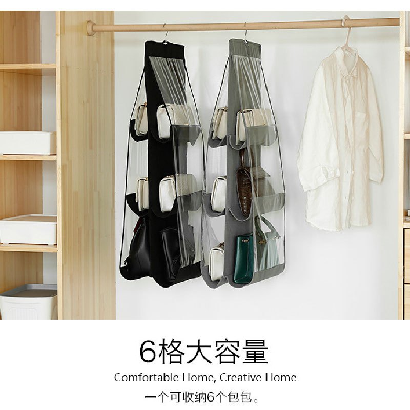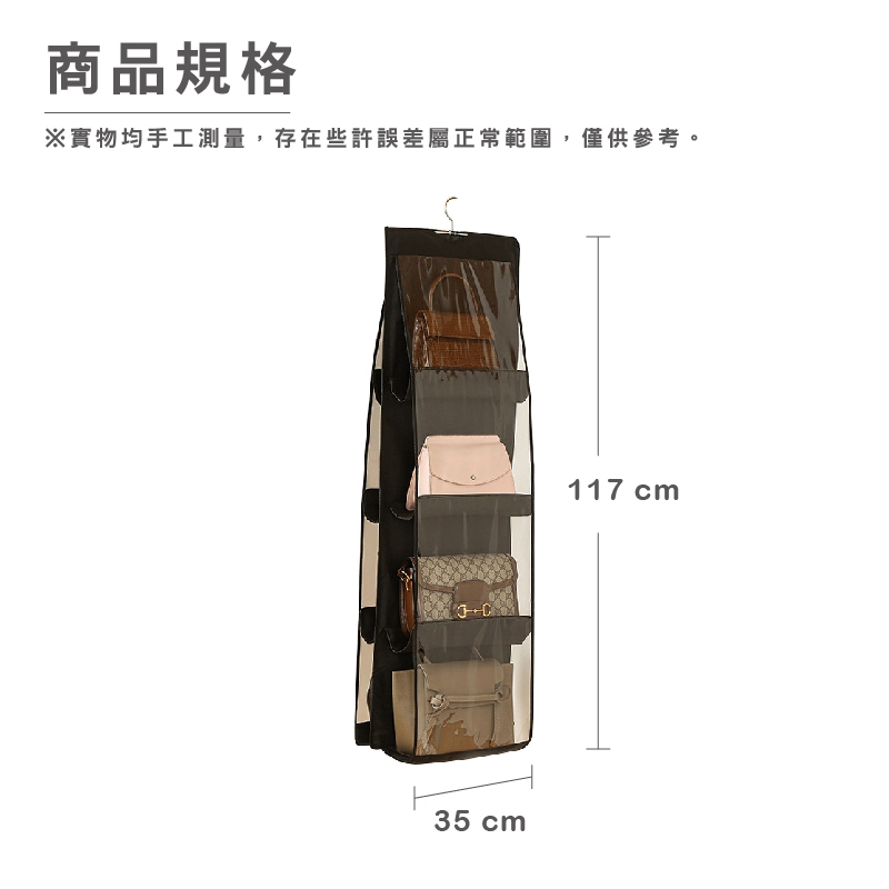 衣櫥雙面六格包包收納袋 收納掛架 收納架 掛袋 包包收納 置物袋 透明 分隔收納 防塵 掛式 衣飾收納_DH016