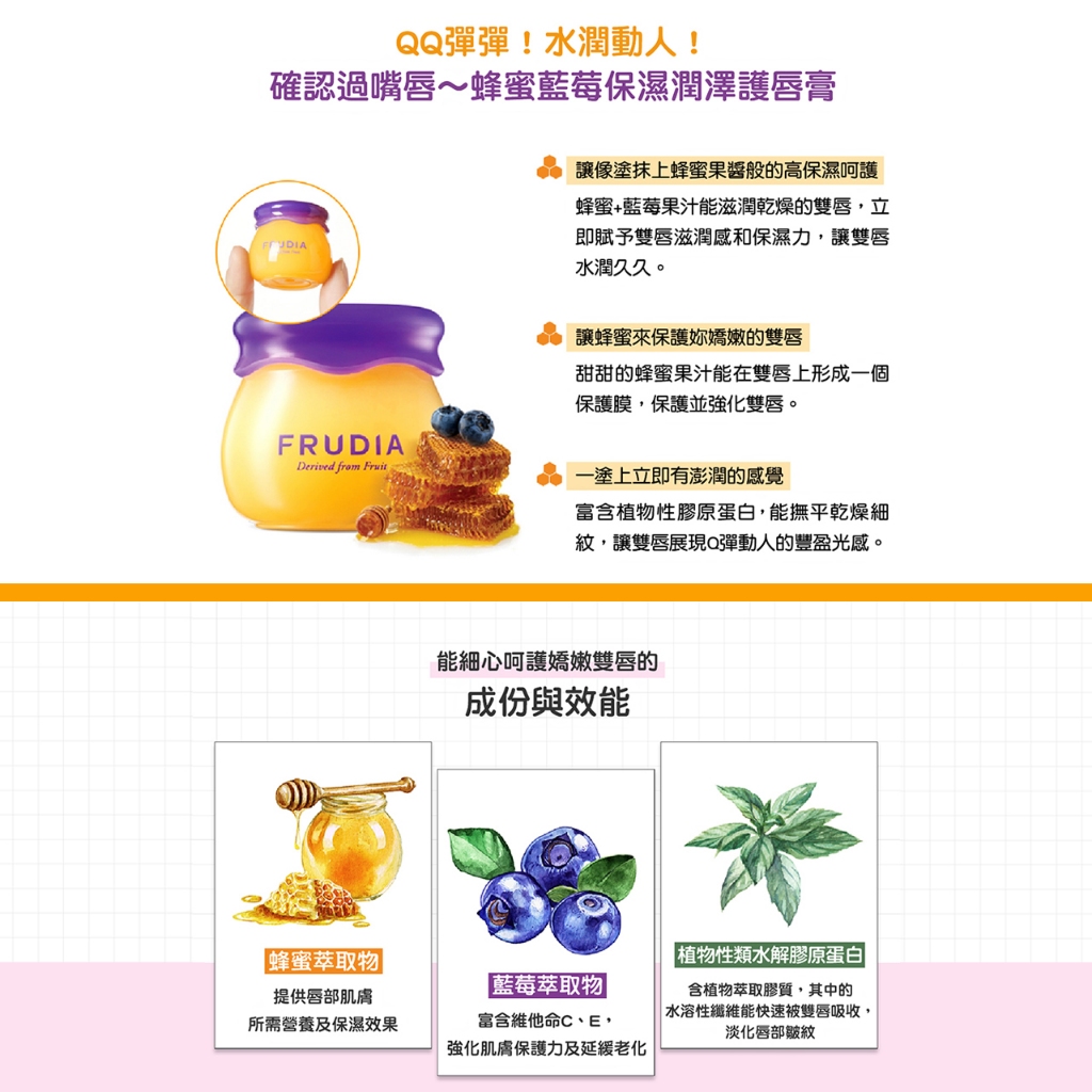 FRUDIA【任4件68折.領券再折】確認過嘴唇 蜂蜜藍莓保濕潤澤護唇膏(軟管裝)10g【可當晚安唇膜】軟管裝Lip TreatmentFRUDIA Taiwan
