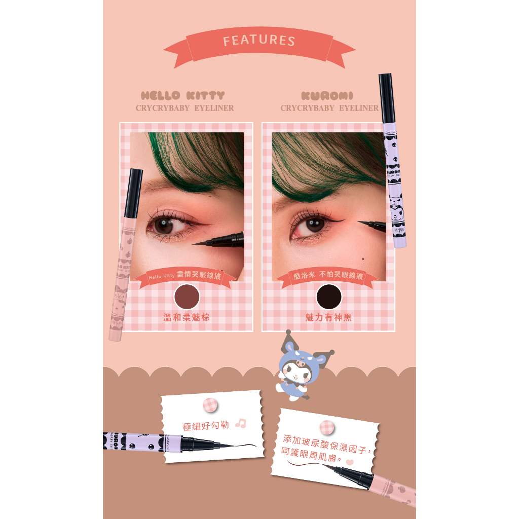 FrehsO2x三麗鷗聯名眼線液 酷洛米 HelloKitty 持色 抗水 防汗 不暈染 滑順 咖啡色 黑色 持久0.6酷洛米 不怕哭眼線液 (魅力無限黑)|Hello Kitty盡情哭眼線液(棕)EyesFreshO2