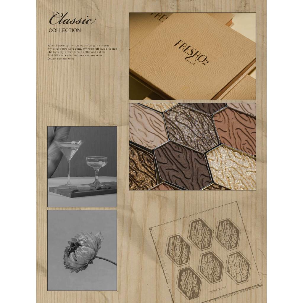 FreshO2 復刻微醺6色眼影盤 14g 經典 大地色系 冷色系 礦物基底 細緻粉末 木紋 手感復刻微醺6色眼影盤EyesFreshO2