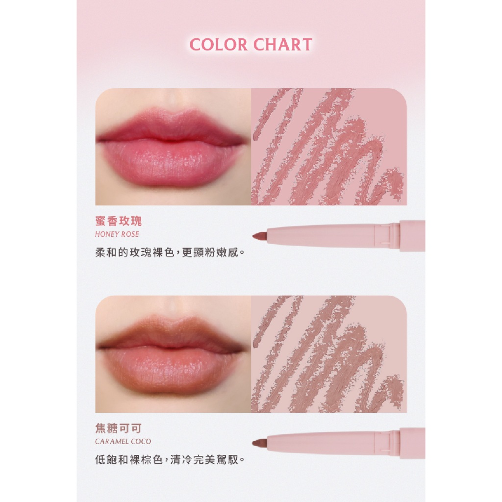 FreshO2 嘟嘟唇線筆0.18g 豐唇 雙頭臥蠶筆 唇線筆刷 精準勾勒唇形Molly形象色-嘟嘟唇線筆.蜜香玫瑰|Molly愛用色-唇線筆.焦糖可可LipsFreshO2
