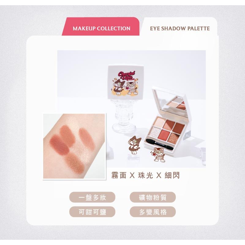 FreshO2 鏡頭星燦捕光6色眼影盤(6.3g) 實用 小巧 礦物質地 不分粉 四季可用 薛妞妞 小貓 聯名企劃鏡頭星燦捕光6色眼影盤EyesFreshO2