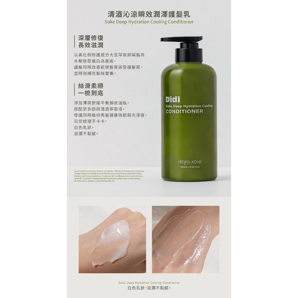 FreshO2 X DiDi聯名系列 清酒沁涼控油洗髮精 (500ml) 清爽 控油 好洗 蒂一名清酒沁涼瞬效潤澤護髮乳|清酒沁涼控油洗髮精ShampooFreshO2