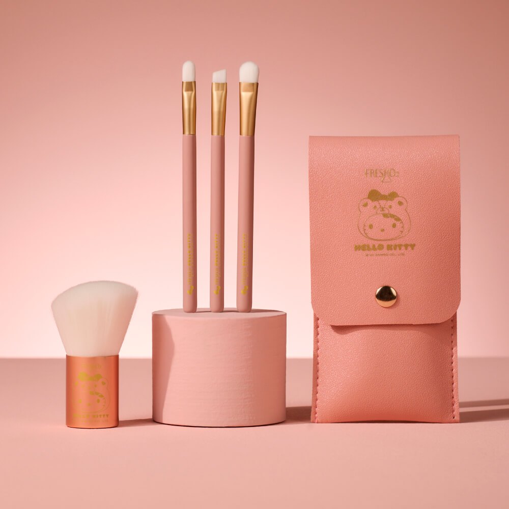 FreshO2x三麗鷗 Hello Kitty 勢必有4把刷具組 收納袋 可愛 (四入組) 眼影刷 眉粉刷 打亮刷 定妝Hello Kitty 勢必有4把刷具組Makeup AccessoriesFreshO2