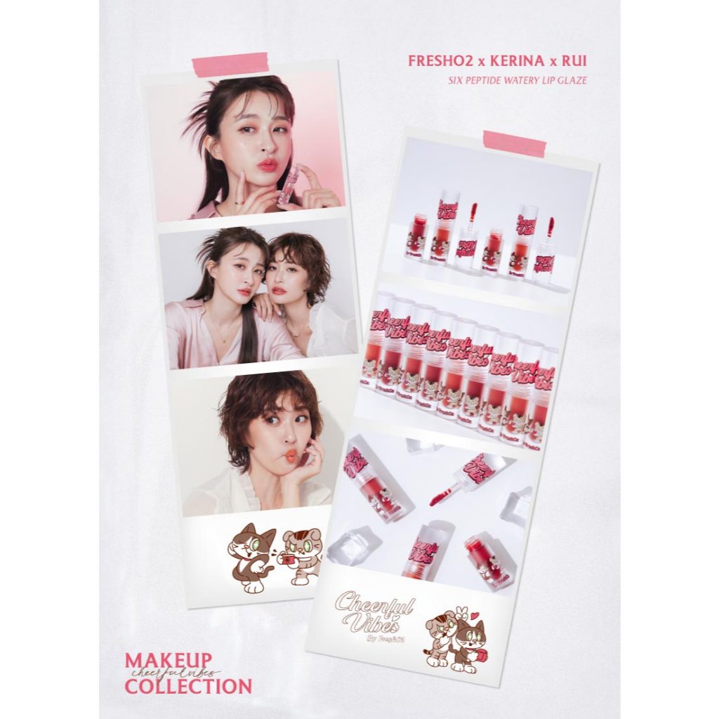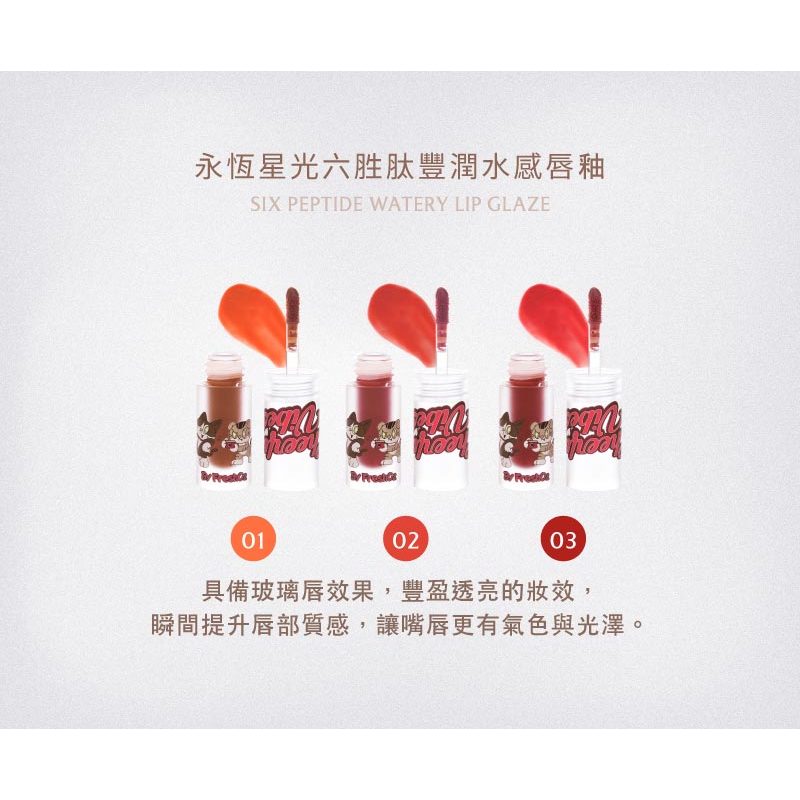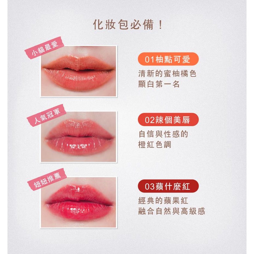 FreshO2 薛妞妞x小貓 聯名企劃 永恆星光六胜肽豐潤水感唇釉(1.5mL) 水光 果汁唇 保濕 亮澤 好攜帶 滋潤01柚點可愛 清新的蜜柚橘色顯白第一名|02辣個美唇 自信與性感的的橙紅色調|03蘋什麼紅 經典的蘋果紅的自然與高級感LipsFreshO2