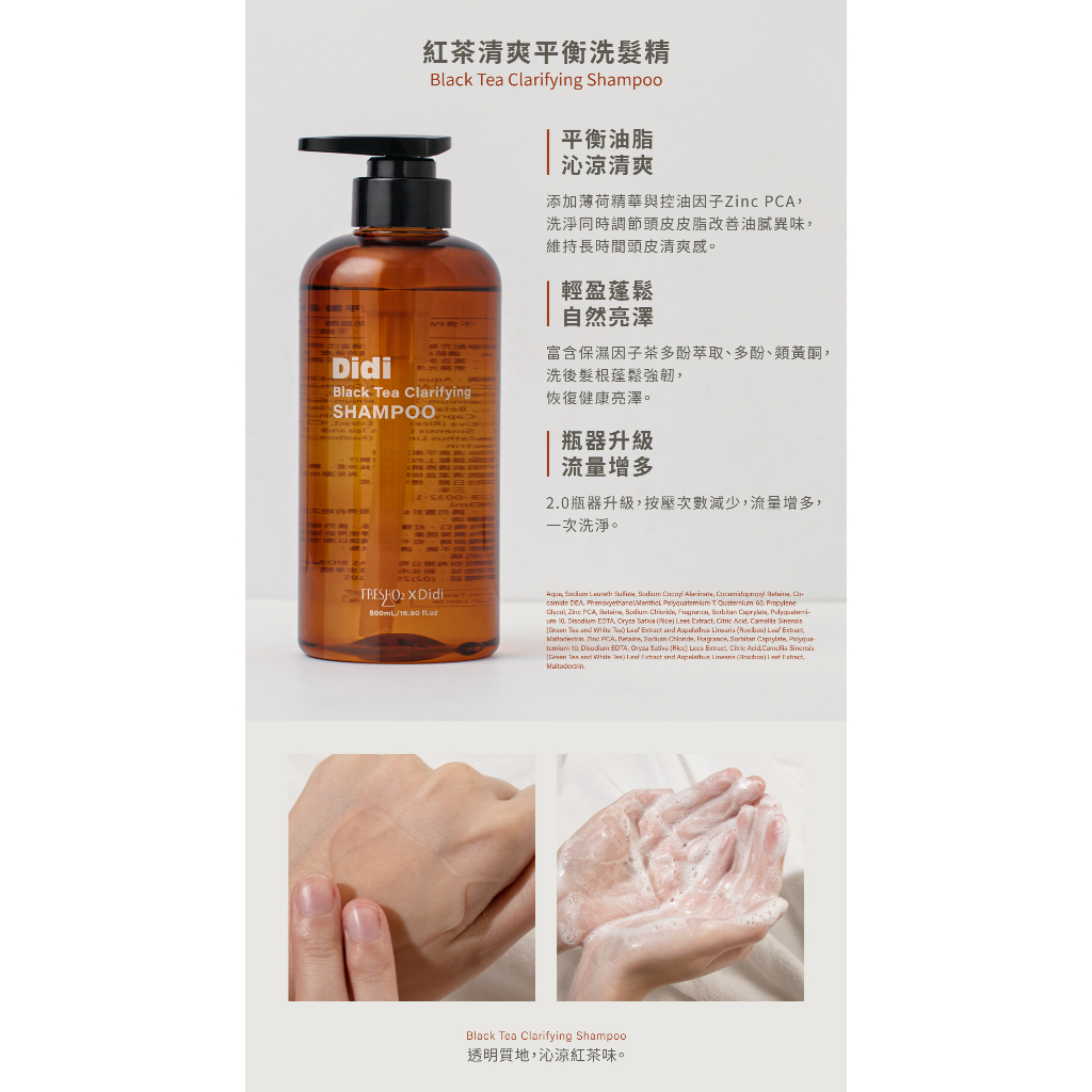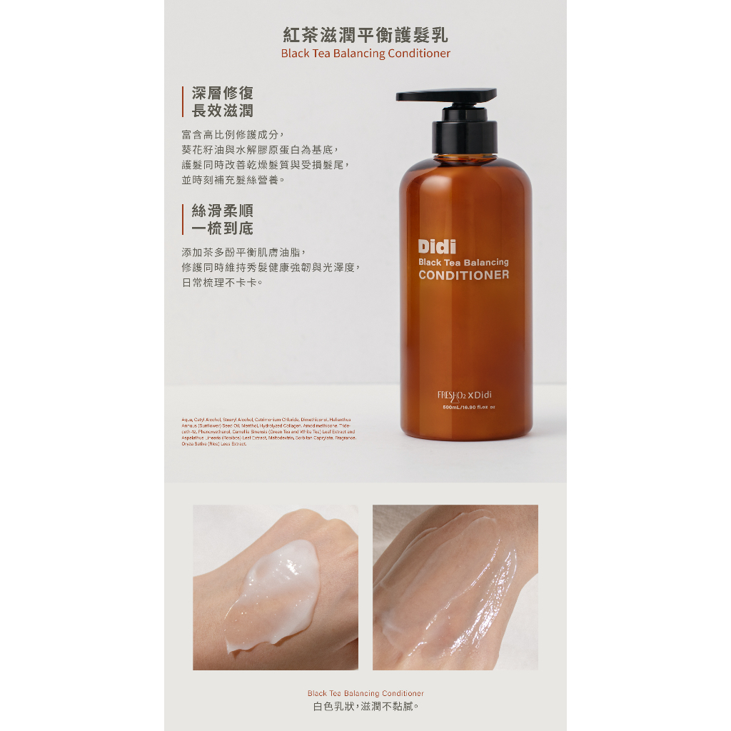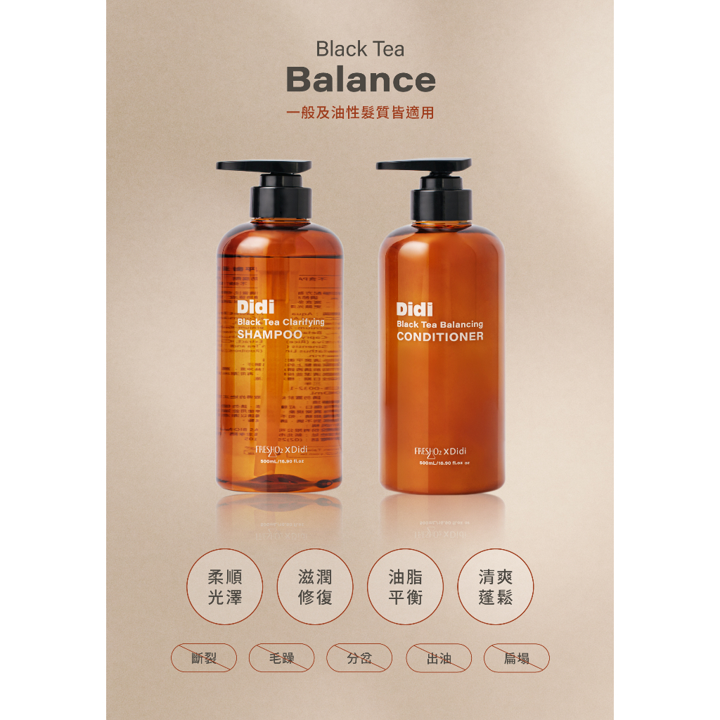 FreshO2 x Didi 聯名款 紅茶清爽平衡洗髮精 護髮乳500ml|養髮平衡油脂 沁涼清爽 滋潤 shampoo紅茶滋潤平衡護髮乳 現貨|紅茶清爽平衡洗髮精 現貨ShampooFreshO2