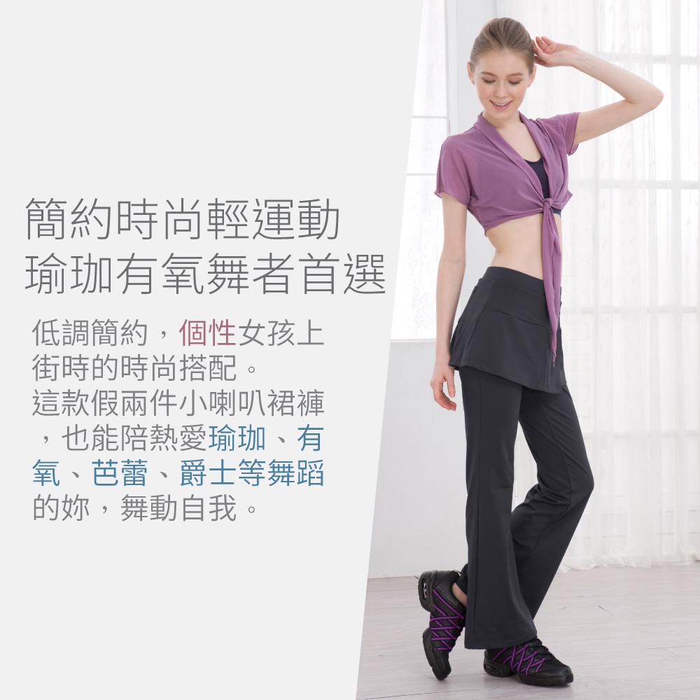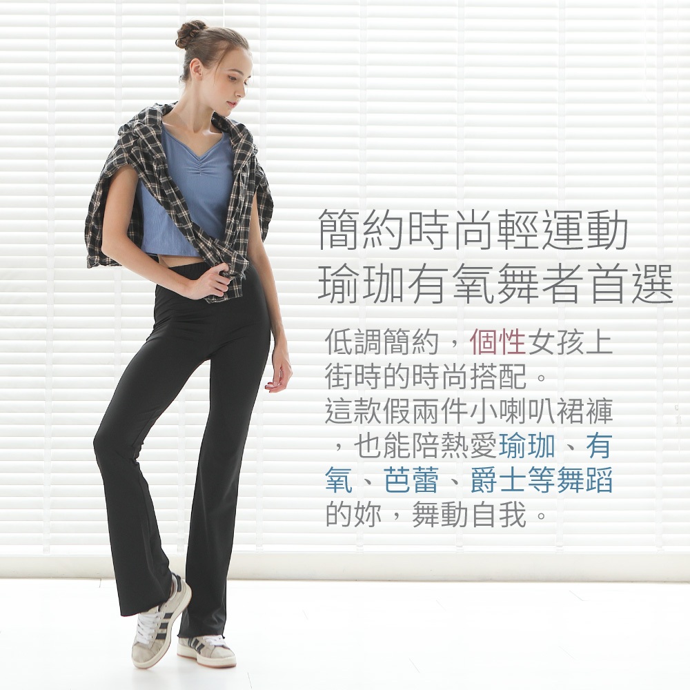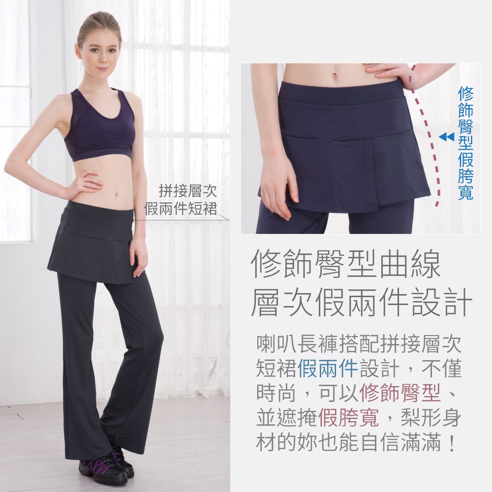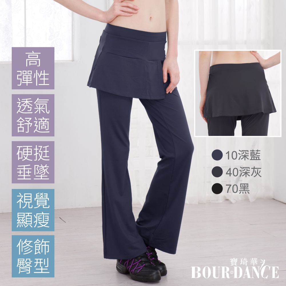 【Bourdance 寶琦華】垂墜層次假兩件短片裙喇叭褲(顯瘦日著/舞者蟑螂水褲/運動舞蹈芭蕾爵士韻律瑜珈有氧)10深藍,M|10深藍,L|10深藍,XL|40深灰,M|40深灰,L|40深灰,XL|70黑,M|70黑,L|70黑,XLSkortsFREEZONE