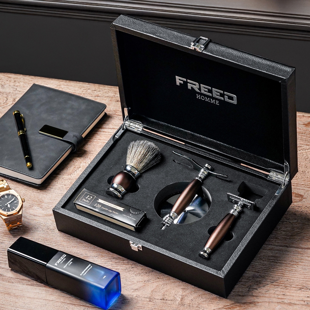 【FREED】雙刃式刮鬍刀豪華四件組禮盒 多色可選 客製化 刻字 七夕 父親節 送禮 生日 男生 男性 禮物推薦 情人節仿胡桃木,不需要刻字|馬鞍棕,不需要刻字|時尚藍,需要刻字(免費)|極致黑,需要刻字(免費)|仿紫紅檀木,需要刻字(免費)|仿胡桃木,需要刻字(免費)|時尚藍,不需要刻字|馬鞍棕,需要刻字(免費)|仿紫紅檀木,不需要刻字|極致黑,不需要刻字Shaving & GroomingFREED男士刮鬍刀第一品牌