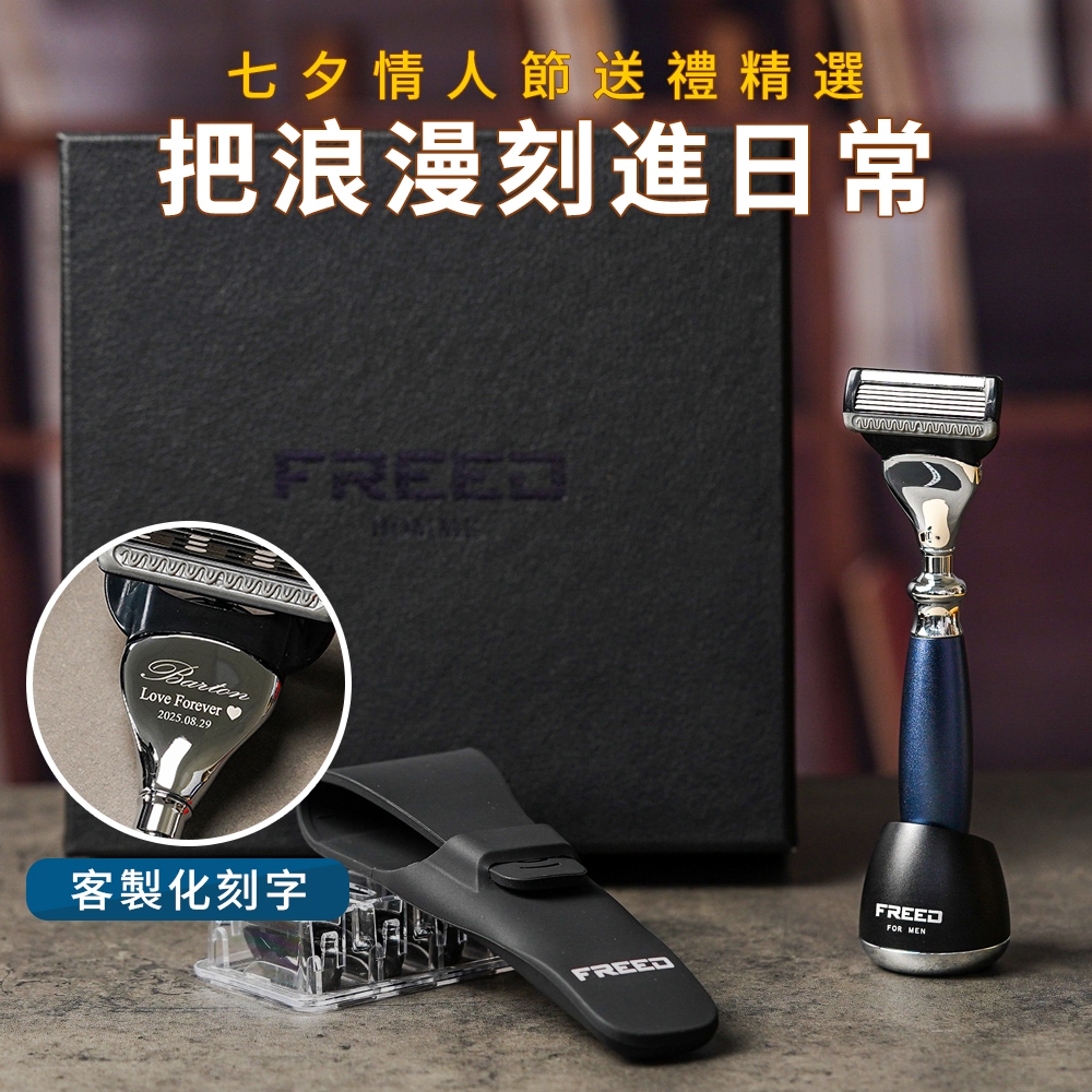 【FREED】五刀式刮鬍刀尊爵四件組禮盒 時尚藍 客製化 刻字 七夕 送禮 生日 男生 男性 禮物推薦 情人節加購刻字|不需要加購刻字Shaving & GroomingFREED男士刮鬍刀第一品牌