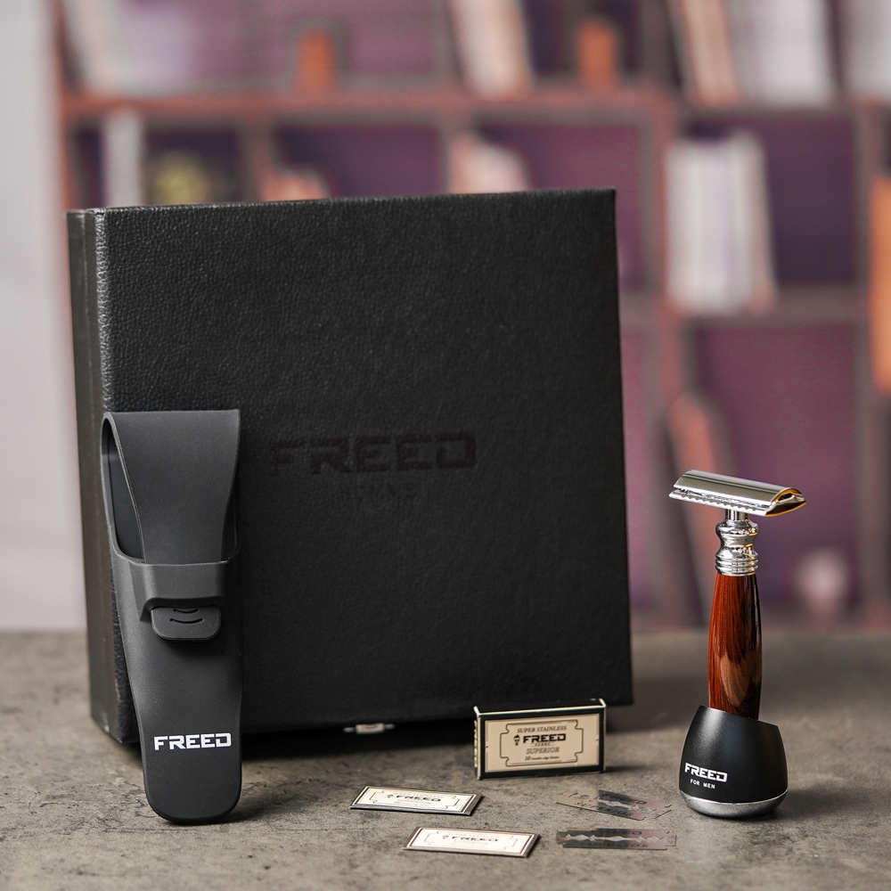 【FREED】封閉式復古雙刃安全刮鬍刀- 仿紫紅檀木 (附刀片10片) 現貨 父親節 七夕 生日禮物 男友禮物 客製化不需要刻字|加購刻字(390元)Shaving & GroomingFREED男士刮鬍刀第一品牌