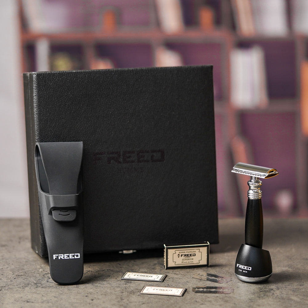 【FREED】封閉式復古雙刃安全刮鬍刀- 極致黑 (附刀片10片) 客製化 刻字 七夕 父親節 送禮 生日 男生 情人節加購刻字(390元)|不需刻字Shaving & GroomingFREED男士刮鬍刀第一品牌