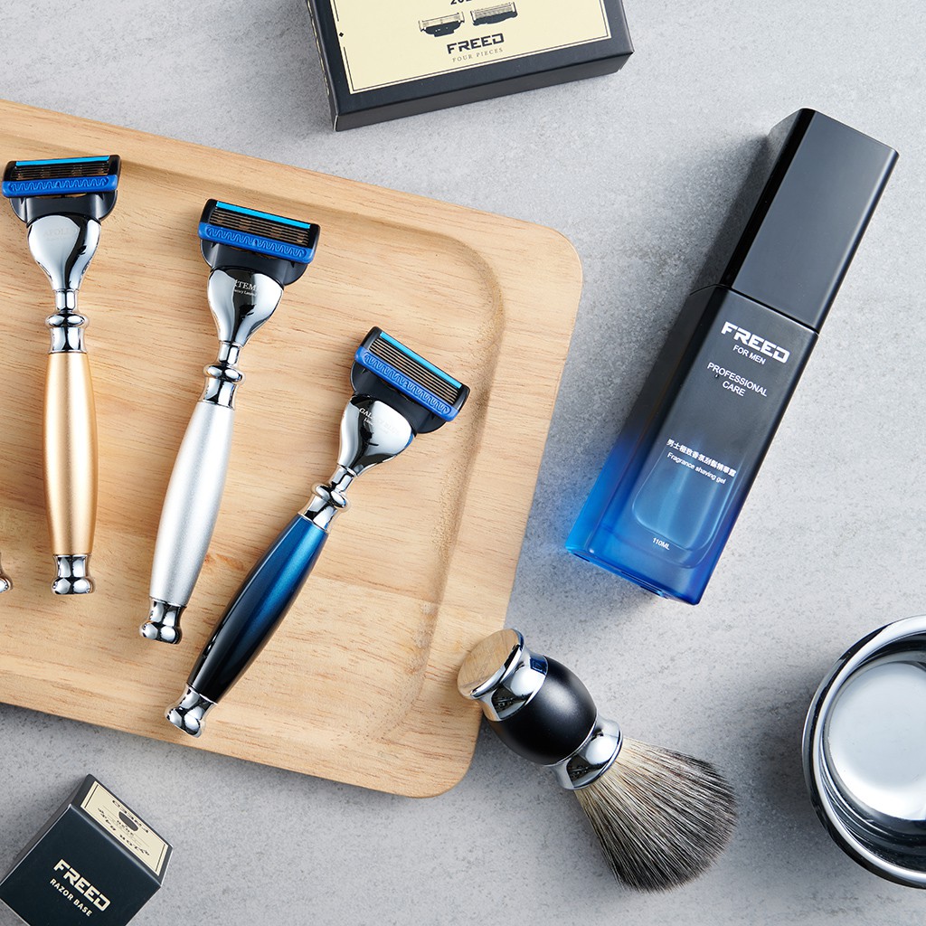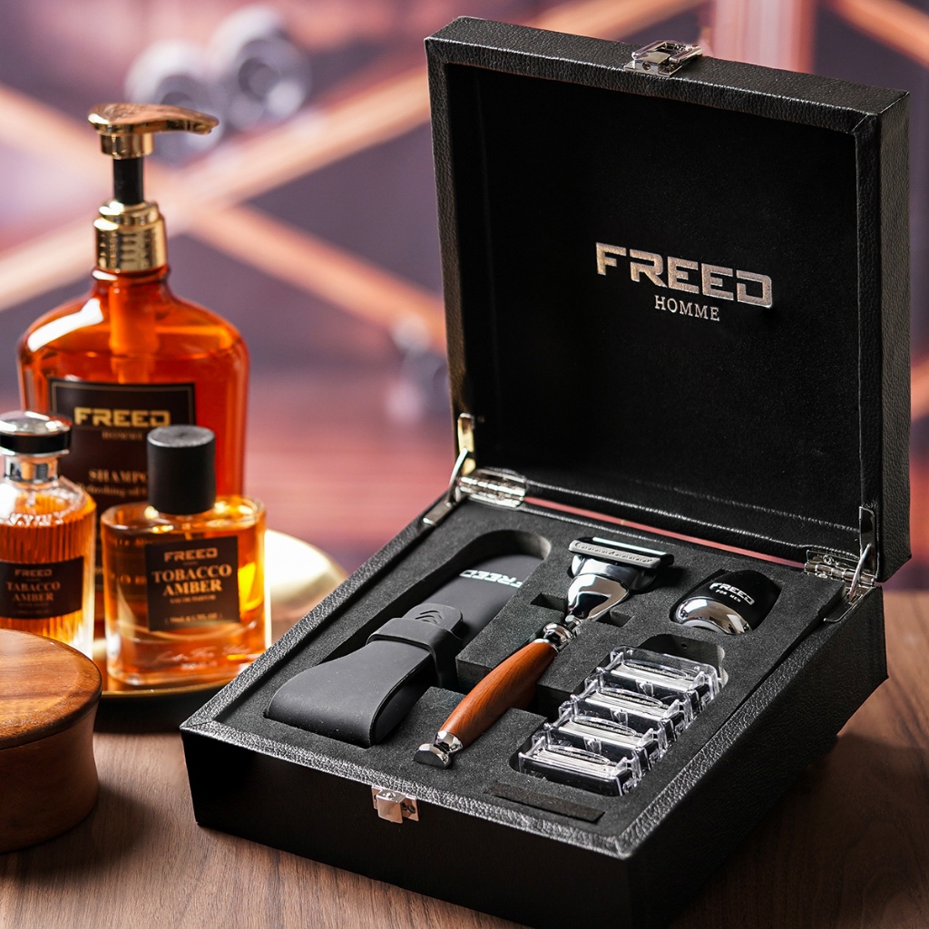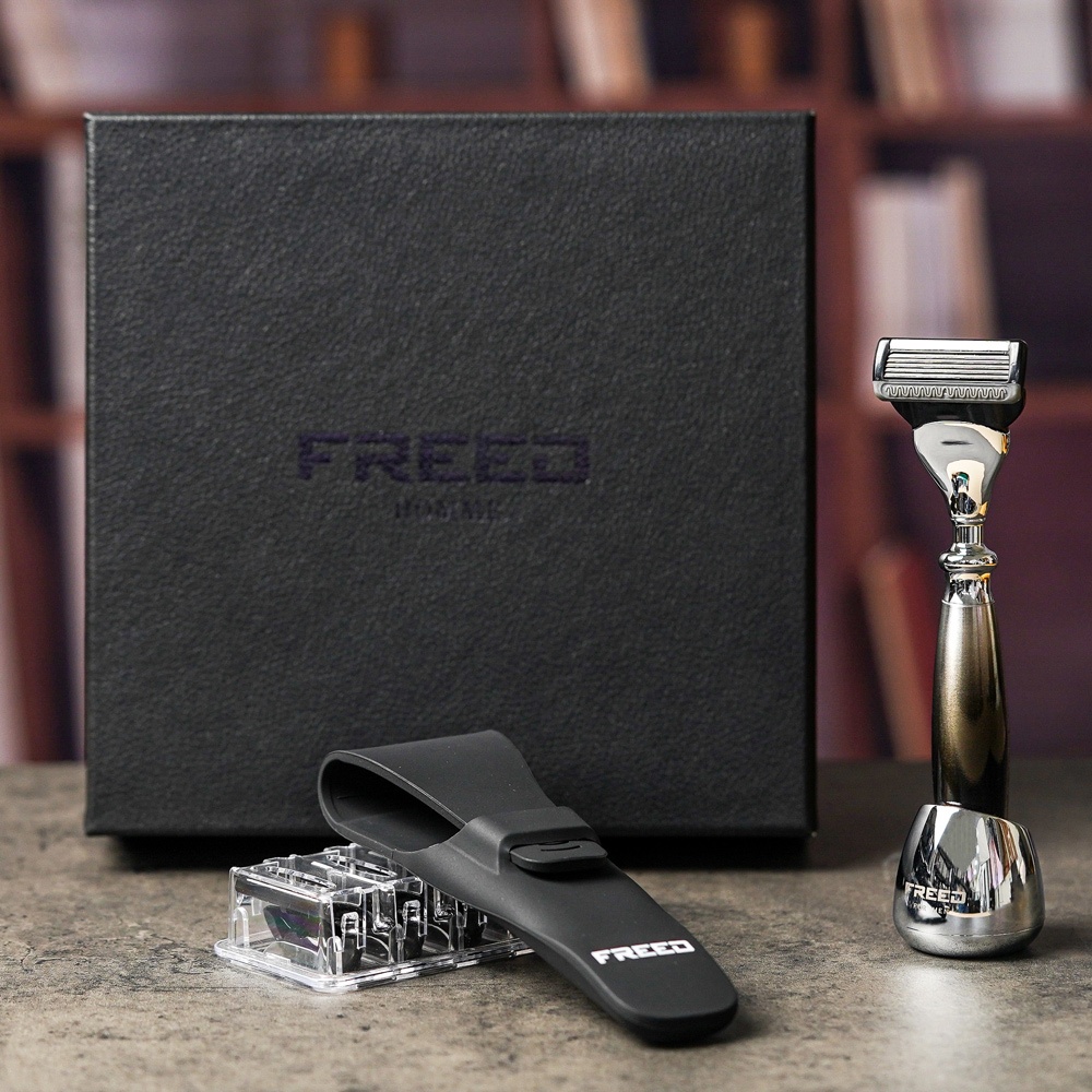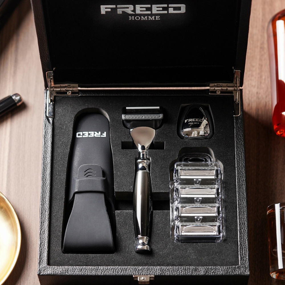 【FREED】五刀式刮鬍刀一週年紀念款 尊爵四件組禮盒-哈德斯 客製化 刻字 七夕 父親節 送禮 生日 男生 情人節免費刻字(留言訂單備註區)|不需刻字Shaving & GroomingFREED男士刮鬍刀第一品牌