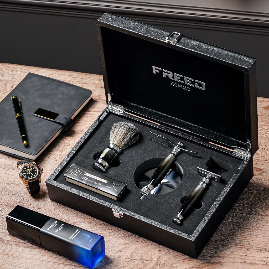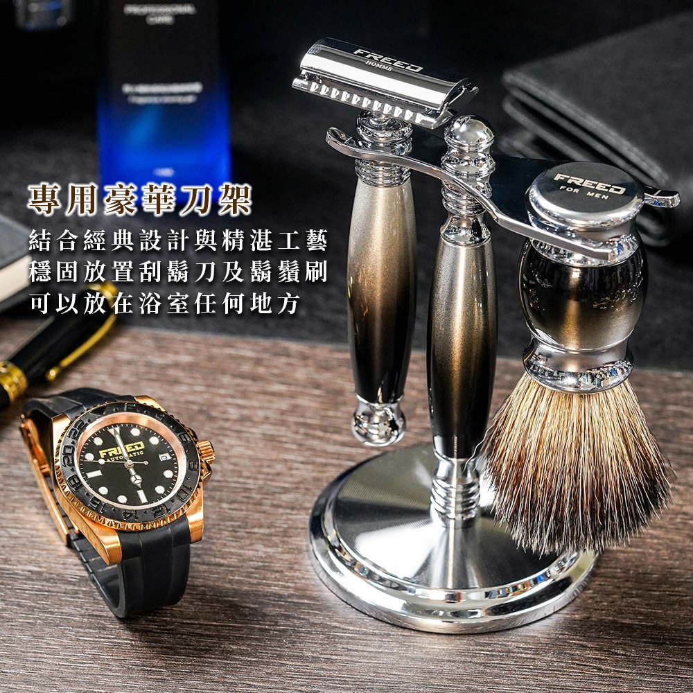 【FREED】豪華四件雙刃刮鬍刀禮盒 一周年烤漆系列 (哈德斯) 客製化 刻字 七夕 父親節 送禮 生日 男生 情人節免費刻字(留言訂單備註區)|不需刻字Shaving & GroomingFREED男士刮鬍刀第一品牌