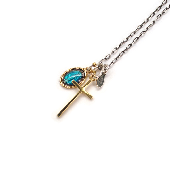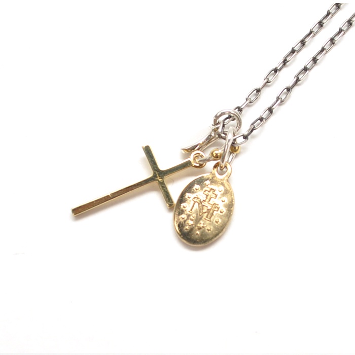 日本AMP JAPAN黃銅十字架與瑪麗亞顯靈聖牌項鍊日本製13AD-286銀色FREAKY HOUSE