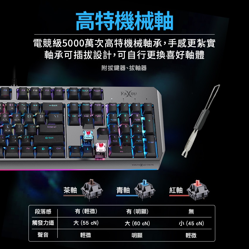 【Foxxray】HKM-91 機械式鍵盤 1677萬色RGB 電競鍵盤 智慧旋鈕 青軸 茶軸 紅軸 熱插拔 附拔鍵軸器茶軸|紅軸|青軸KeyboardsFoxXRay狐鐳 官方旗艦店