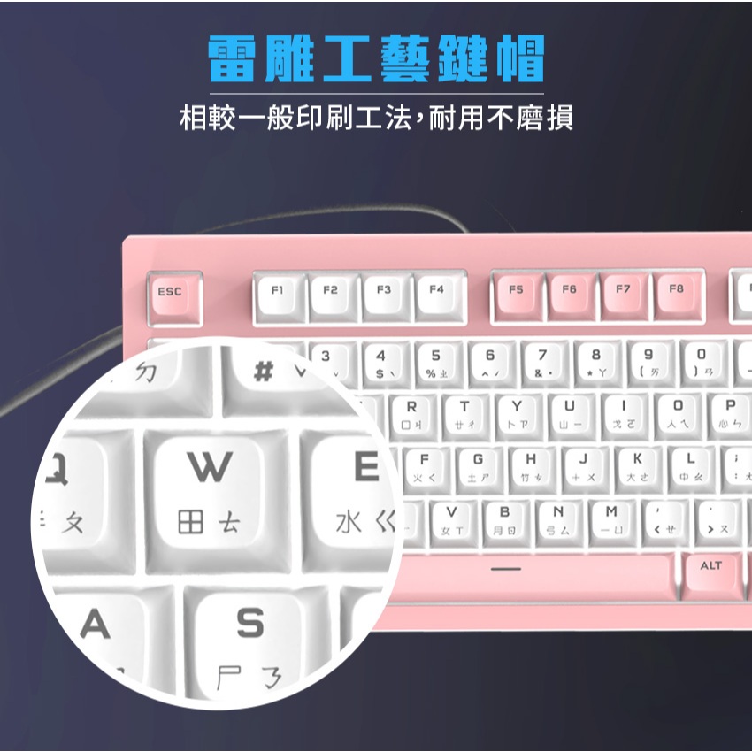 【Foxxray】BKL-90 霧影極致靜音 有線薄膜鍵盤 超靜音 類紅軸手感 球型鍵帽 19鍵不衝 雷雕注音 電競鍵盤黑藍拼色|粉白拼色KeyboardsFoxXRay狐鐳 官方旗艦店