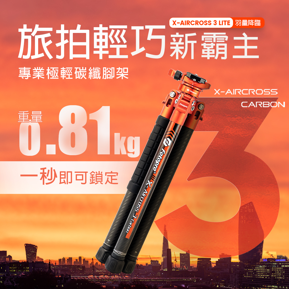【現貨】FOTOPRO X Aircross 3 LITE 專業碳纖龍紋腳架火焰橘|原碳灰Tripods, Monopods, & AccessoriesFOTOPRO 品牌旗艦館
