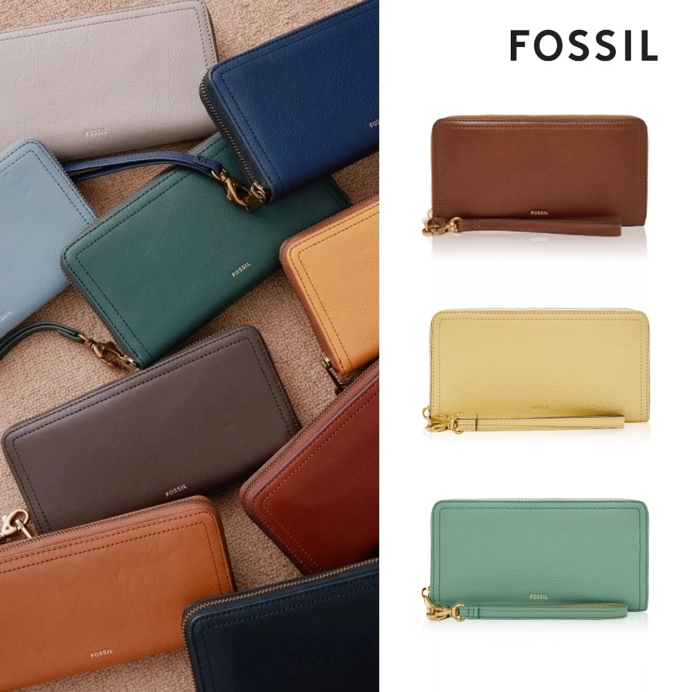【FOSSIL 官方旗艦館】Logan 多層真皮拉鍊RFID防盜長夾 (多色可選)藍色細雨|薄暮綠|鵝黃色|黑色|咖啡色|乾燥玫瑰粉|綠色|紫色Long WalletsFOSSIL官方旗艦館