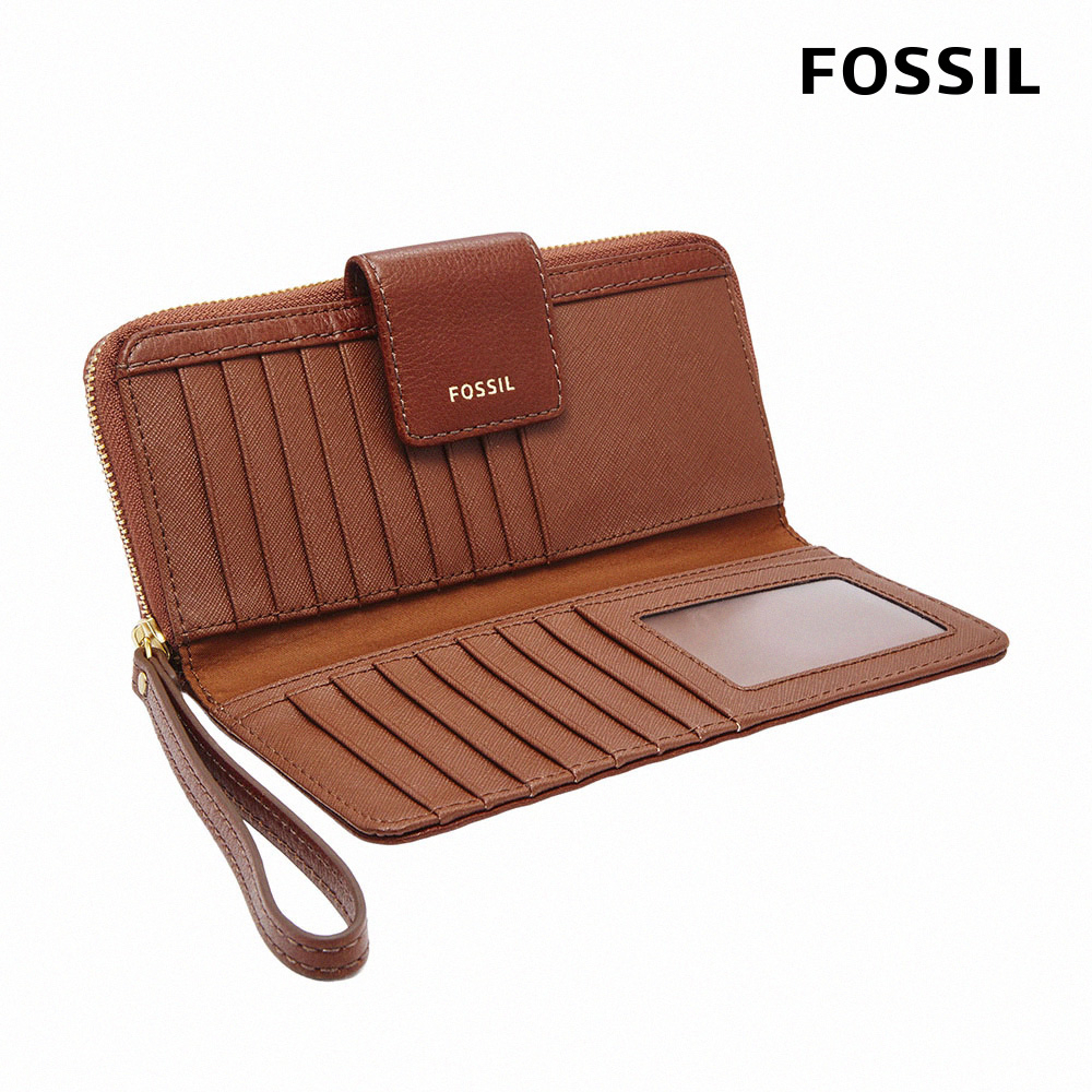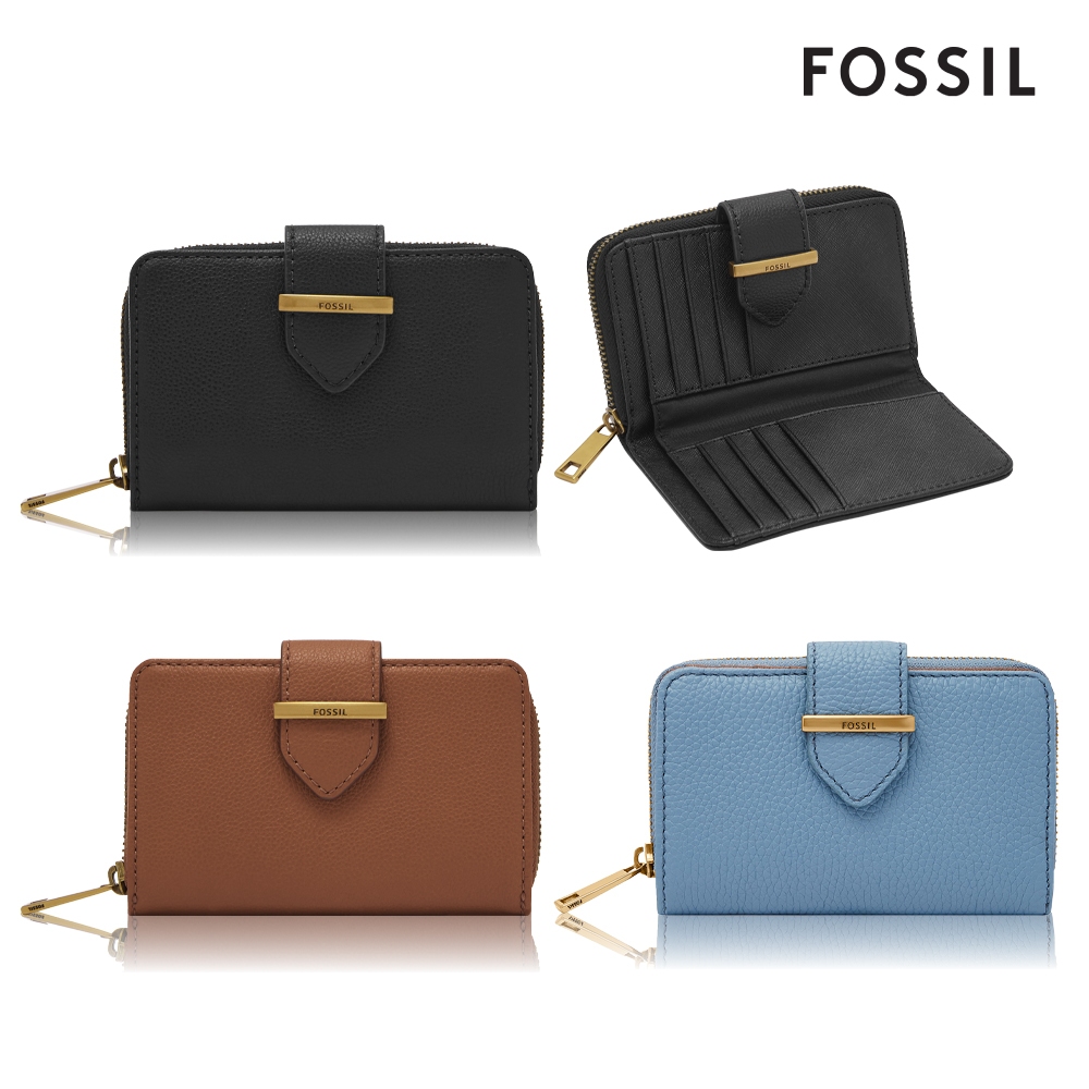 【FOSSIL 官方旗艦館】Madison 真皮拉鍊長夾 (多色可選)薄暮藍|桃紅色|經典黑|棕色|綠色Long WalletsFOSSIL官方旗艦館