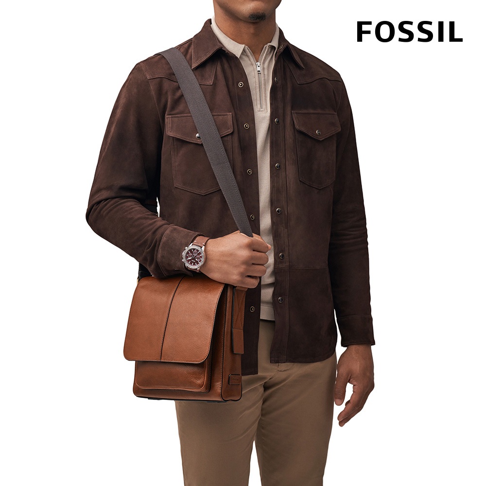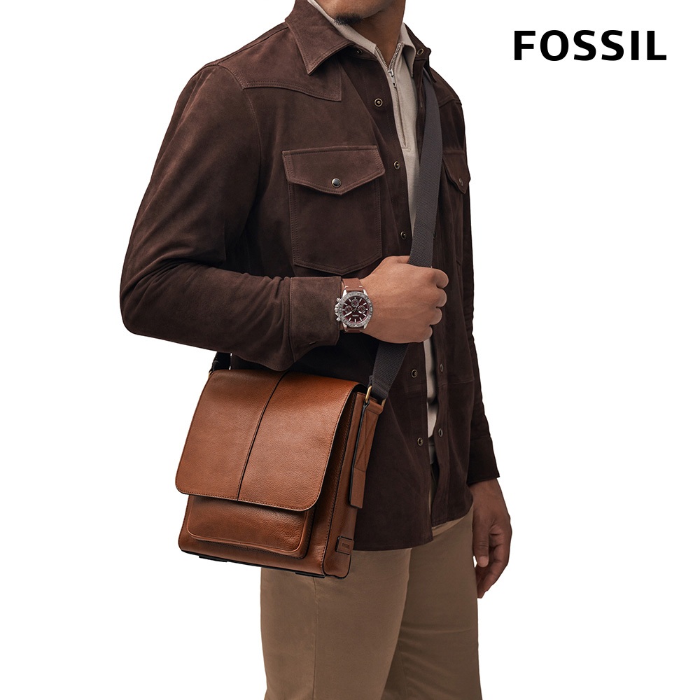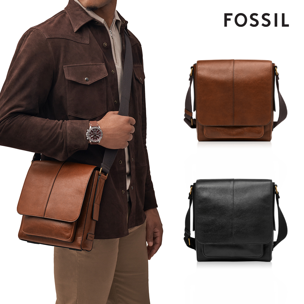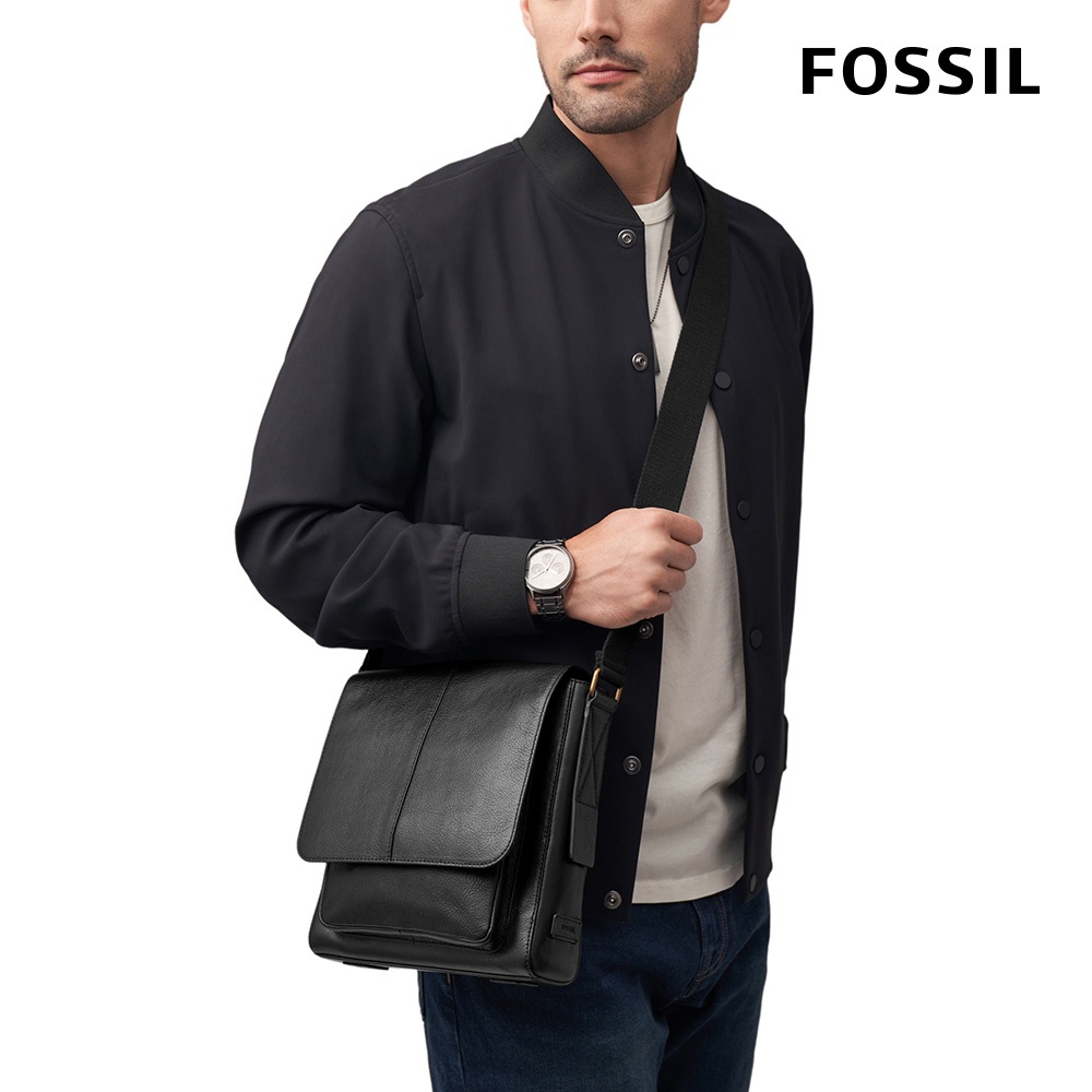 【FOSSIL 官方旗艦館】Kayden 真皮男士斜背包 (兩色可選)黑色|深棕色FOSSIL官方旗艦館