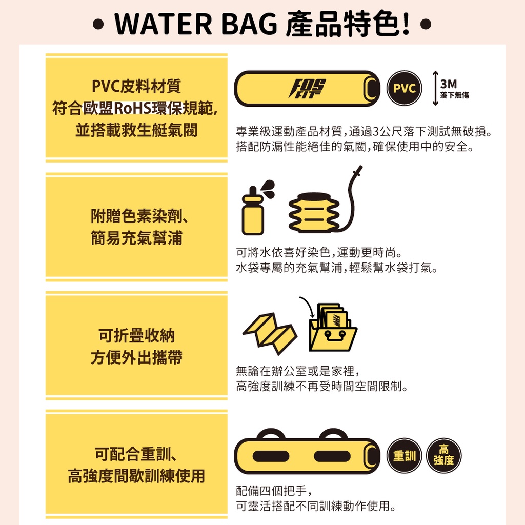 【FOSFIT】核心訓練水袋 最大35L 可調節重量 肌群強化 居家/旅行鍛鍊 (無彩盒環保包裝)14L (附充氣幫浦)|20L (附充氣幫浦)|35L (附充氣幫浦)Fitness EquipmentFOSFIT|健康生活養成