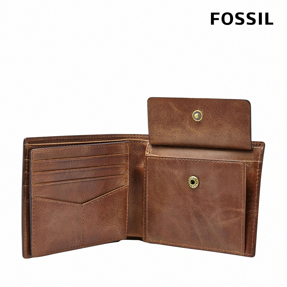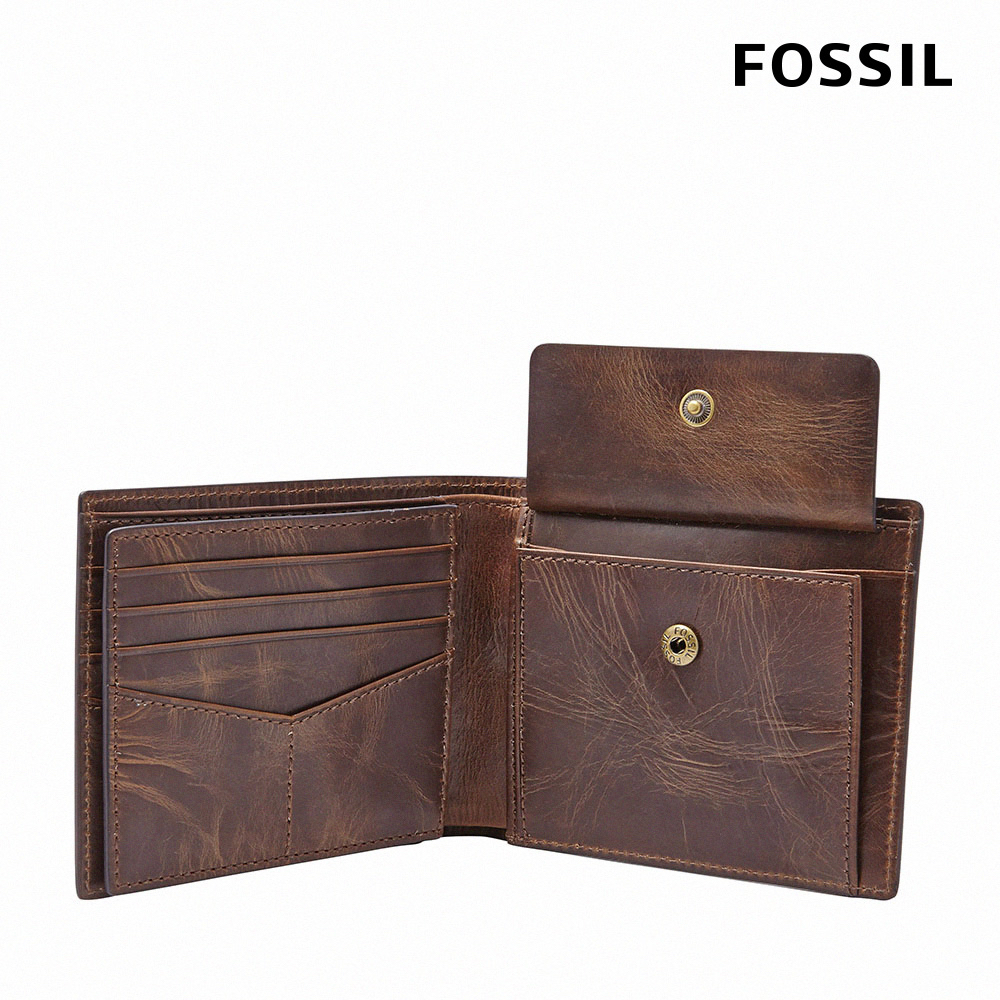 【FOSSIL 官方旗艦館】Derrick 真皮大零錢袋RFID皮夾(禮盒組附鐵盒,多色可選)棕綠色|藍色|咖啡色|深棕色|黑色Bifold & Trifold WalletsFOSSIL官方旗艦館