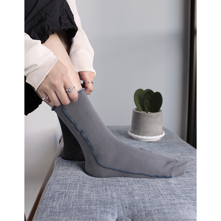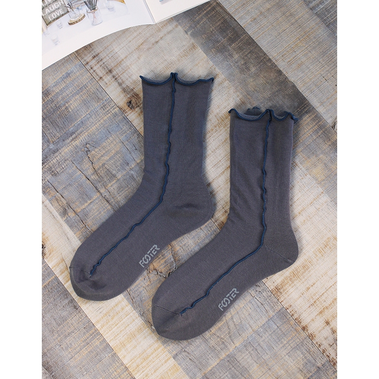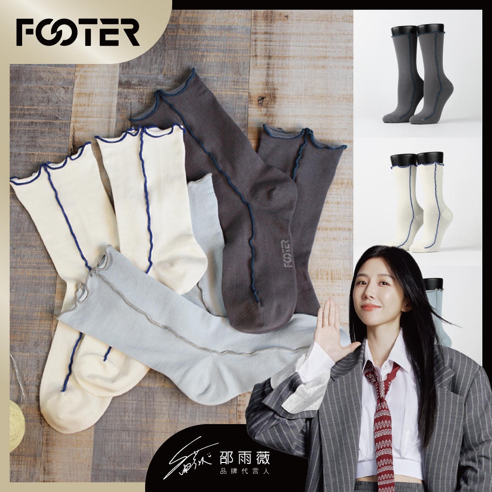 FOOTER 跳色拷克木耳捲邊襪 – 邵雨薇 同款 捲邊 日系 高筒襪 (女-T74)T74M-米白|T74M-深灰|T74M-寶寶藍SocksFOOTER 機能除臭襪