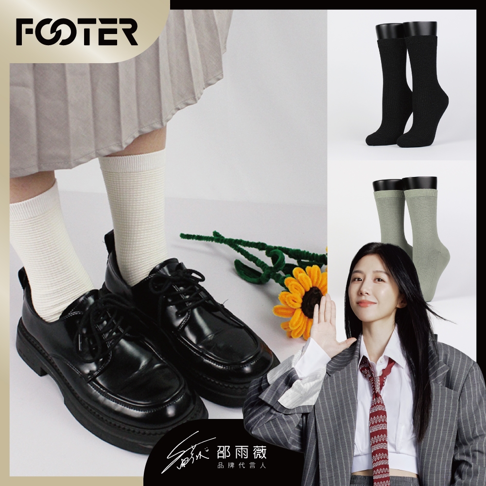 FOOTER 除臭襪 華夫格微分子襪 – 邵雨薇 同款 復古 華夫格 中筒襪 (女-T75M)T75M-米白|T75M-灰綠|T75M-黑SocksFOOTER 機能除臭襪