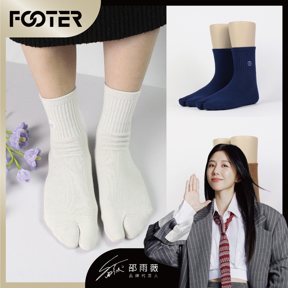 FOOTER 刺繡分趾中筒襪 – 邵雨薇 同款 中筒襪 分指襪 (女-F01M)F01M-燕麥白|F01M-卡其|F01M-藍SocksFOOTER 機能除臭襪