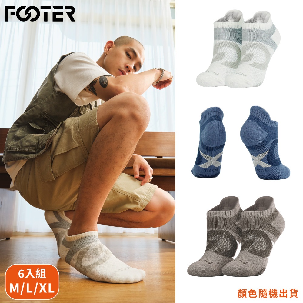 FOOTER 【6入組】環形360度減壓船短襪 機能襪 運動襪 除臭襪 短襪 (顏色隨機出貨不挑色)T100M(22-25cm) 隨機出貨|T100L(24-27cm) 隨機出貨|T100XL(26-29cm) 隨機出貨FOOTER 機能除臭襪