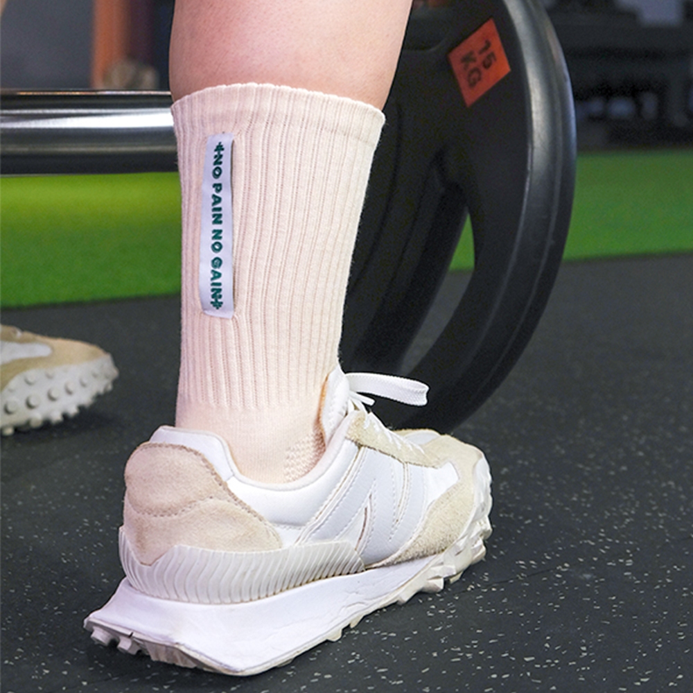 FOOTER|訓練標語健身襪|健身 運動襪 除臭襪 高筒襪 (女-K219M)K219M-白|K219M-米SocksFOOTER 機能除臭襪