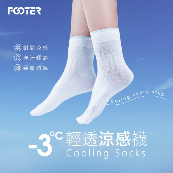 FOOTER -3℃ 輕透涼感襪 – 涼感 降溫 中長襪 (T76)M(22-25cm)|L(24-27cm)|XL(26-29cm)FOOTER 機能除臭襪